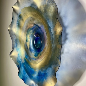 Each flower come with a hanger with a hole in the back for easy hanging. Each piece is light weight and all you will need is a nail or thumb tack to hang it from. If you can hang a picture, you can hang these plates. Each order comes with a set of hanging instructions. For outdoor hanging, please request our free outdoor hardware. For ceiling hanging please request velcro.
