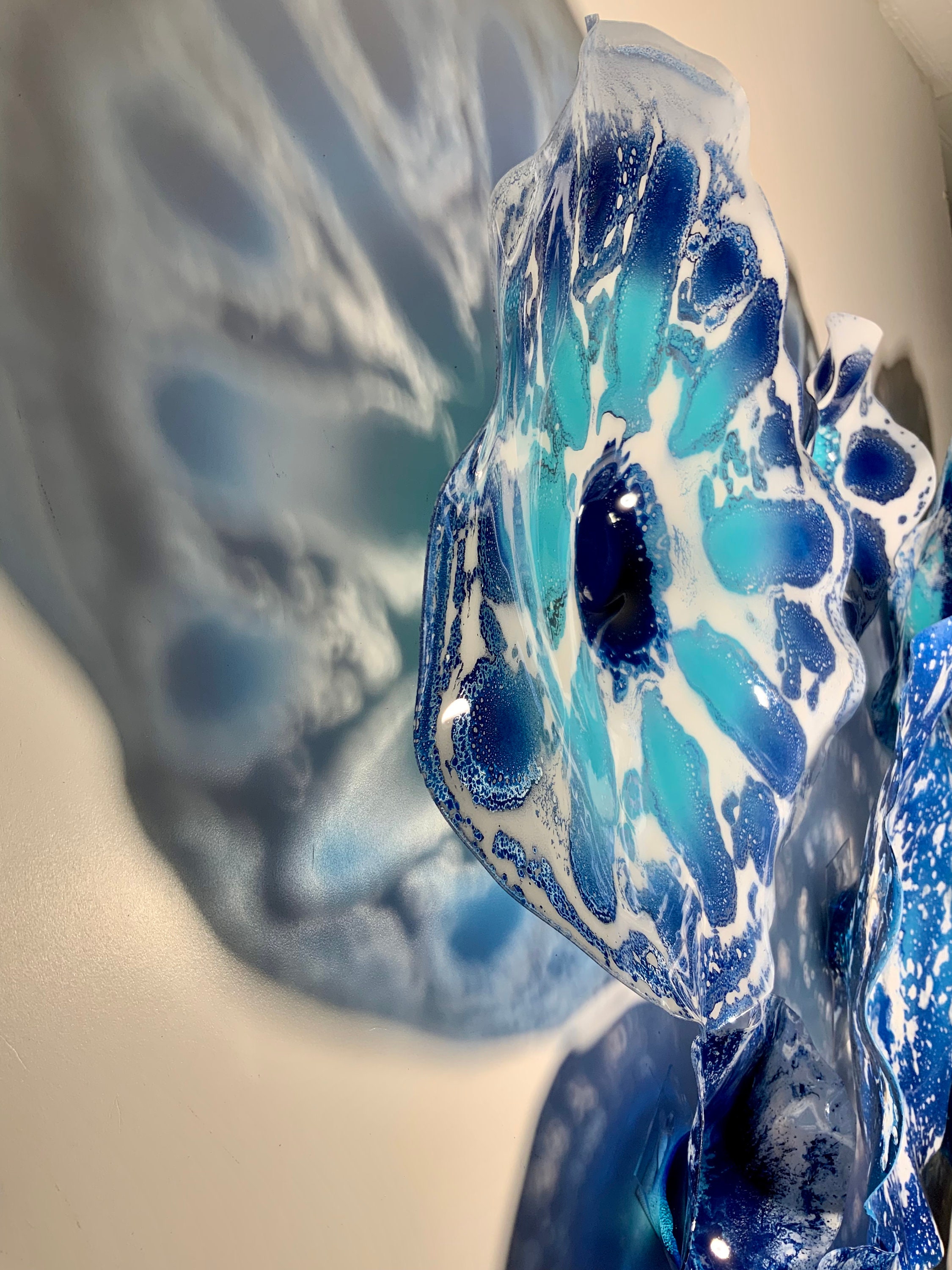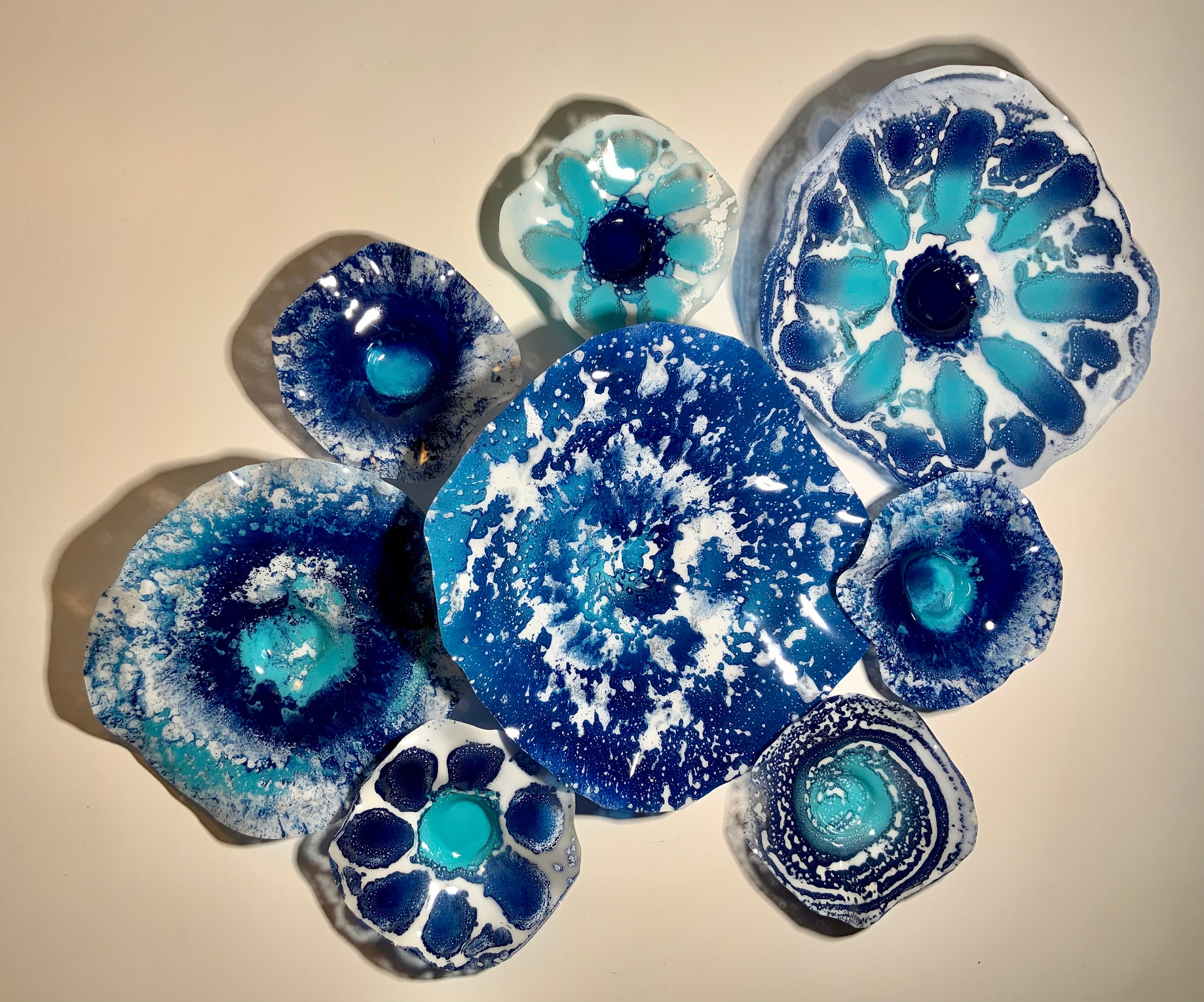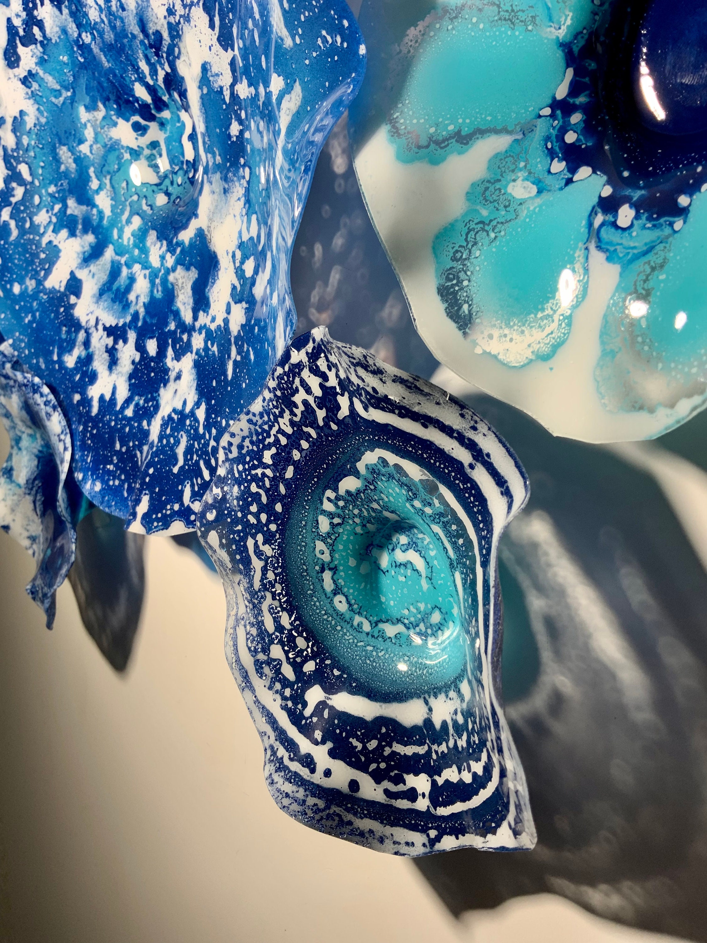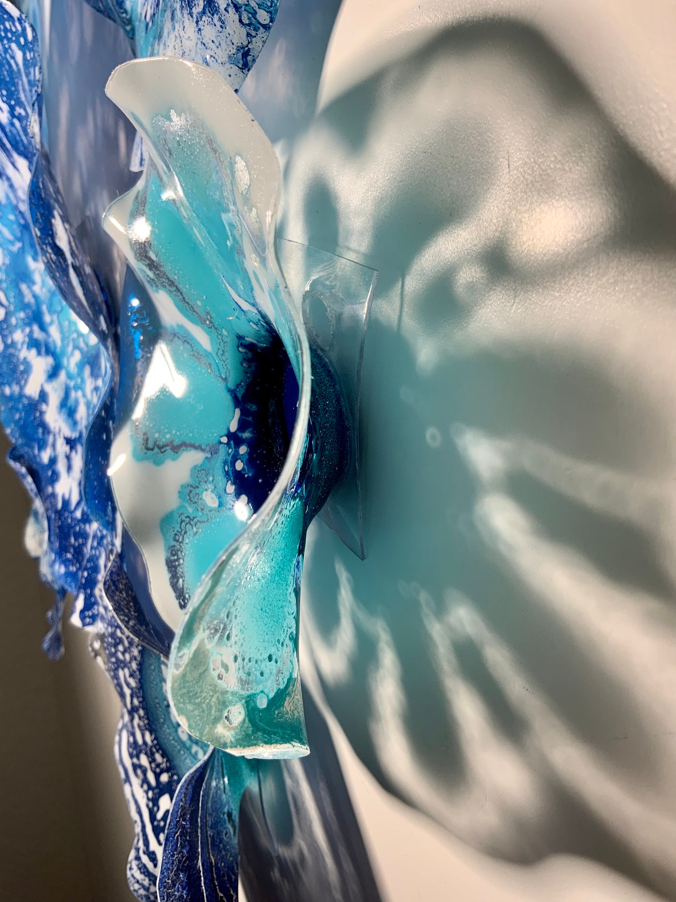 Our wall flowers are made from sustainable recycled PET as in a water bottle. Each piece contains at least 50% recycled polyethylene terphalate (rPET)