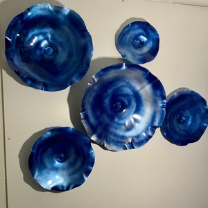 Each flower come with a hanger with a hole in the back for easy hanging. Each piece is light weight and all you will need is a nail or thumb tack to hang it from. If you can hang a picture, you can hang these plates. Each order comes with a set of hanging instructions. For outdoor hanging, please request our free outdoor hardware. For ceiling hanging please request velcro.