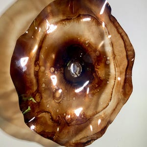 Each flower come with a hanger with a hole in the back for easy hanging. Each piece is light weight and all you will need is a nail or thumb tack to hang it from. If you can hang a picture, you can hang these plates. Each order comes with a set of hanging instructions. For outdoor hanging, please request our free outdoor hardware. For ceiling hanging please request velcro.