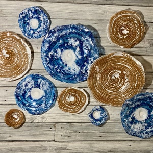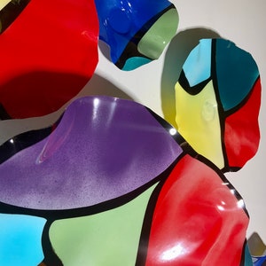 Each collectible piece is unique, no two are alike. This permanent, colorful, eye catching art looks and feels like glass. They shimmer in the light resembling water. They are very DURABLE AND LIGHTWEIGHT. These flowers are easy to hang, are all weather and UV resistant. Great for indoor or outdoor decorating.