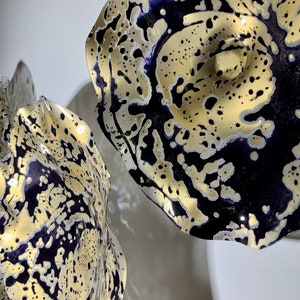 Each flower come with a hanger with a hole in the back for easy hanging. Each piece is light weight and all you will need is a nail or thumb tack to hang it from. If you can hang a picture, you can hang these plates. Each order comes with a set of hanging instructions. For outdoor hanging, please request our free outdoor hardware. For ceiling hanging please request velcro.