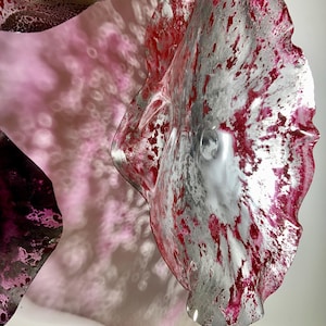 From the wall, they look like glass. The bonuses are that these flowers are light, unbreakable, environmentally friendly, easy to hang, and have no damage to the wall due to drilling for would-be-heavy traditional glass flowers.