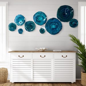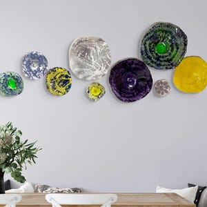 Each flower come with a hanger with a hole in the back for easy hanging. Each piece is light weight and all you will need is a nail or thumb tack to hang it from. If you can hang a picture, you can hang these plates. Each order comes with a set of hanging instructions. For outdoor hanging, please request our free outdoor hardware. For ceiling hanging please request velcro.