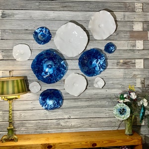 Each collectible piece is unique, no two are alike. This permanent, colorful, eye catching art looks and feels like glass. They shimmer in the light resembling water. They are very DURABLE AND LIGHTWEIGHT. These flowers are easy to hang, are all weather and UV Resistant. Great for indoor or outdoor decorating.