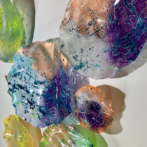Our wall flowers are made from sustainable recycled PET as in a water bottle. Each piece contains at least 50% recycled polyethylene terphalate (rPET)