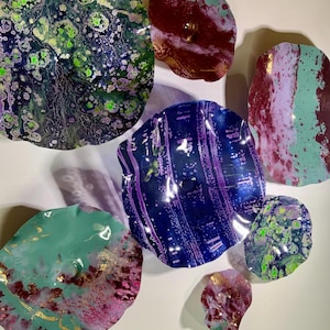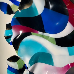 The CoralREEFlections line is from the Ocean Arts studio. Todd and Stephanie Lynd have developed an art of turning recycled plastic (PET) and partially recycled material into Art wares. The color is hand folded into clear material under high heat.