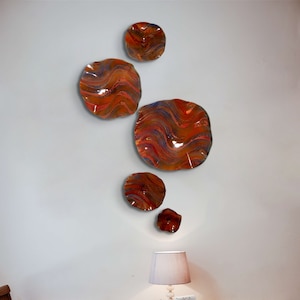 Each collectible piece is unique, no two are alike. This permanent, colorful, eye catching art looks like glass. They shimmer in the light resembling water. They are very DURABLE AND LIGHTWEIGHT. These flowers are easy to hang, are all weather and UV resistant. Great for indoor or outdoor decorating.