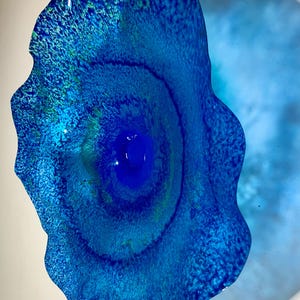 Each collectible piece is unique, no two are alike. This permanent, colorful, eye catching art looks like glass. It shimmers in the light resembling water. They are very DURABLE AND LIGHTWEIGHT. These flowers are easy to hang, are all weather and will not fade in the sun. These flowers are easy to hang, are all weather and UV resistant. Great for indoor or outdoor decorating.