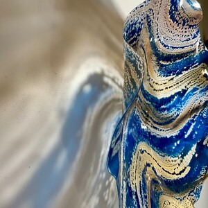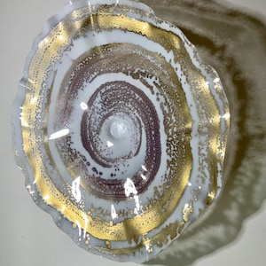 Each collectible piece is unique, no two are alike. This permanent, colorful, eye catching art looks like glass. It shimmers in the light resembling water. They are very DURABLE AND LIGHTWEIGHT. Great for indoor or outdoor decorating.