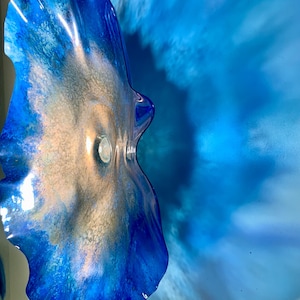 Each collectible piece is unique, no two are alike. This permanent, colorful, eye catching art looks like glass. It shimmers in the light resembling water. They are very DURABLE AND LIGHTWEIGHT. Great for indoor or outdoor decorating.