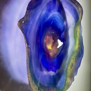 Each collectible piece is unique, no two are alike. This permanent, colorful, eye catching art looks and feels like glass. It shimmers in the light resembling water. They are very DURABLE, AND LIGHTWEIGHT. These flowers are easy to hang, all weather and UV resistant. Great for indoor or outdoor decorating.