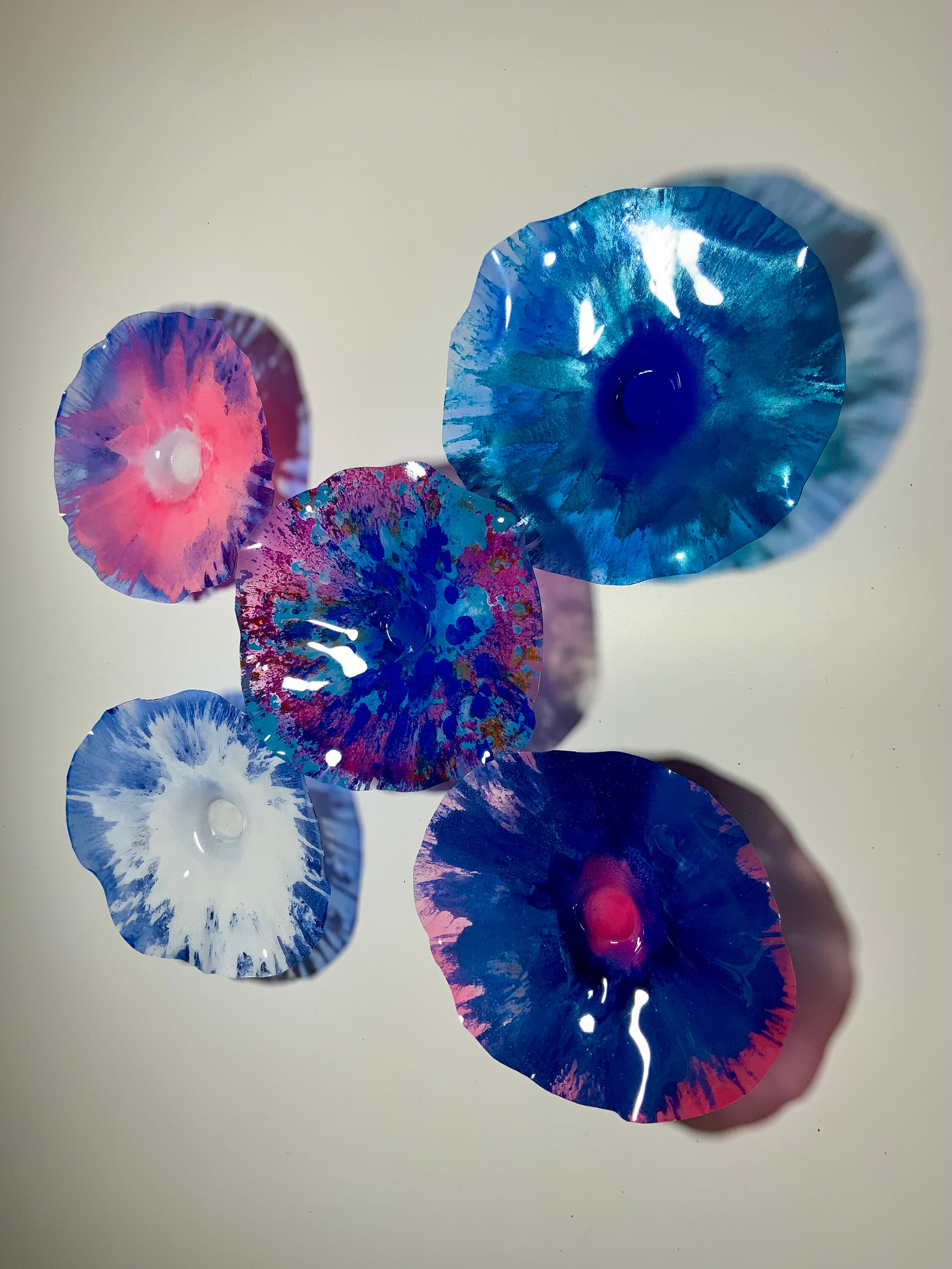 Our wall flowers are made from sustainable recycled PET as in a water bottle. Each piece contains at least 50% recycled polyethylene terphalate (rPET)