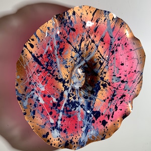Each collectible piece is unique, no two are alike. This permanent, colorful, eye catching art looks and feels like glass. It shimmers in the light resembling water. They are very DURABLE AND LIGHTWEIGHT. This flower is easy to hang all weather and will not fade in the sun. Great for indoor or outdoor decorating.