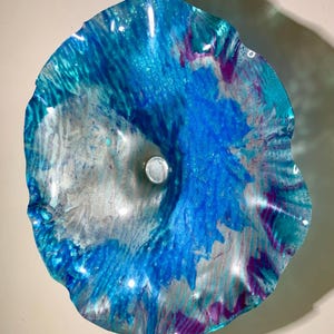 Wall flower plate 15" handmade eco-friendly plastic/home wall art/metallic aqua marine blue/purple/saffron looks like glass/minimalist decor