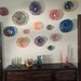 Each flower come with a hanger with a hole in the back for easy hanging. Each piece is light weight and all you will need is a nail or thumb tack to hang it from. If you can hang a picture, you can hang these plates. Each order comes with a set of hanging instructions. For outdoor hanging, please request our free outdoor hardware. For ceiling hanging please request velcro.