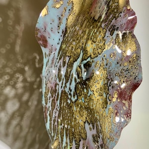 Each collectible piece is unique, no two are alike. This permanent, colorful, eye catching art looks and feels like glass. It shimmers in the light resembling water. They are very DURABLE AND LIGHTWEIGHT. This flower is easy to hang all weather and UV resistant. Great for indoor or outdoor decorating.