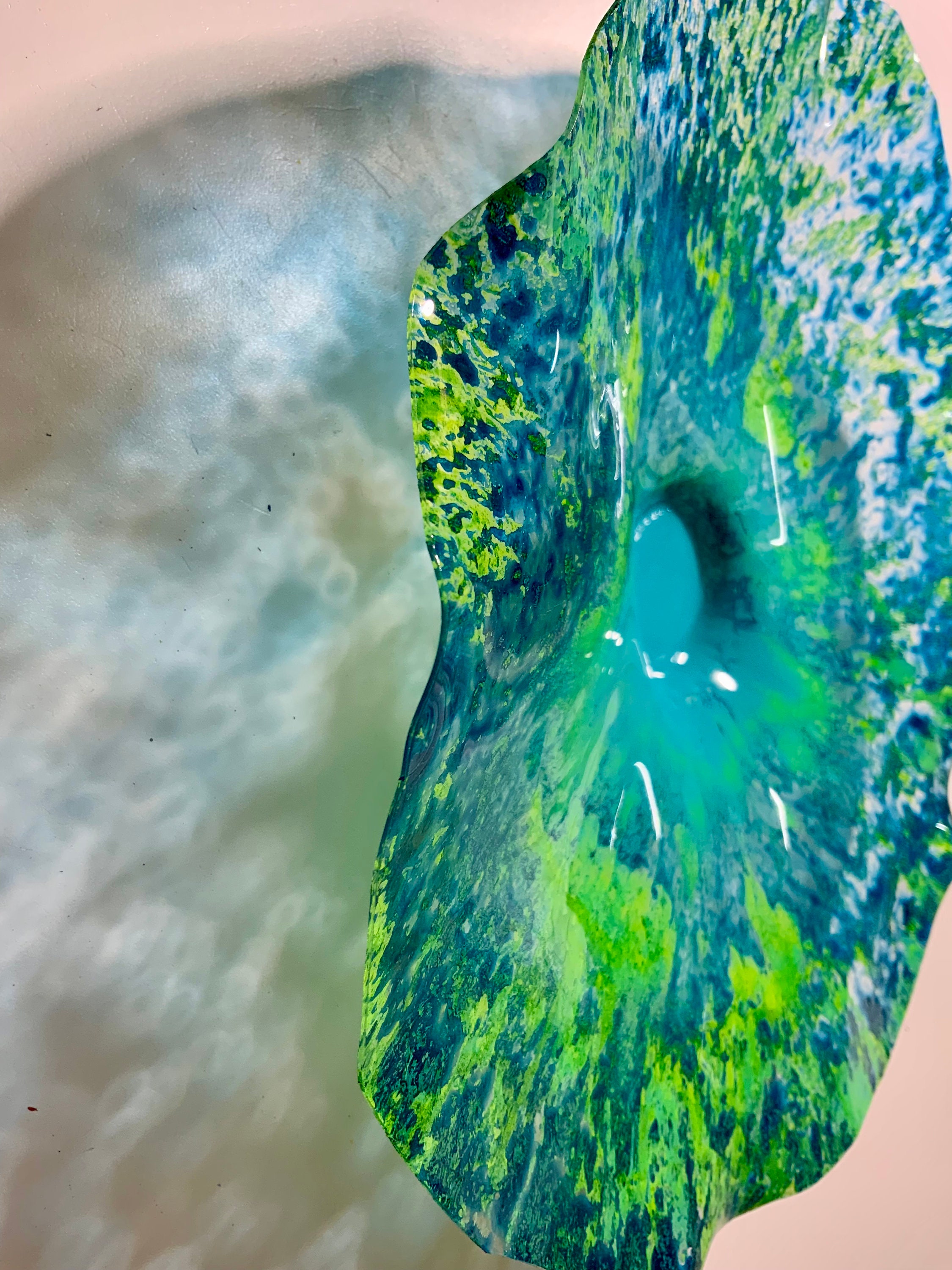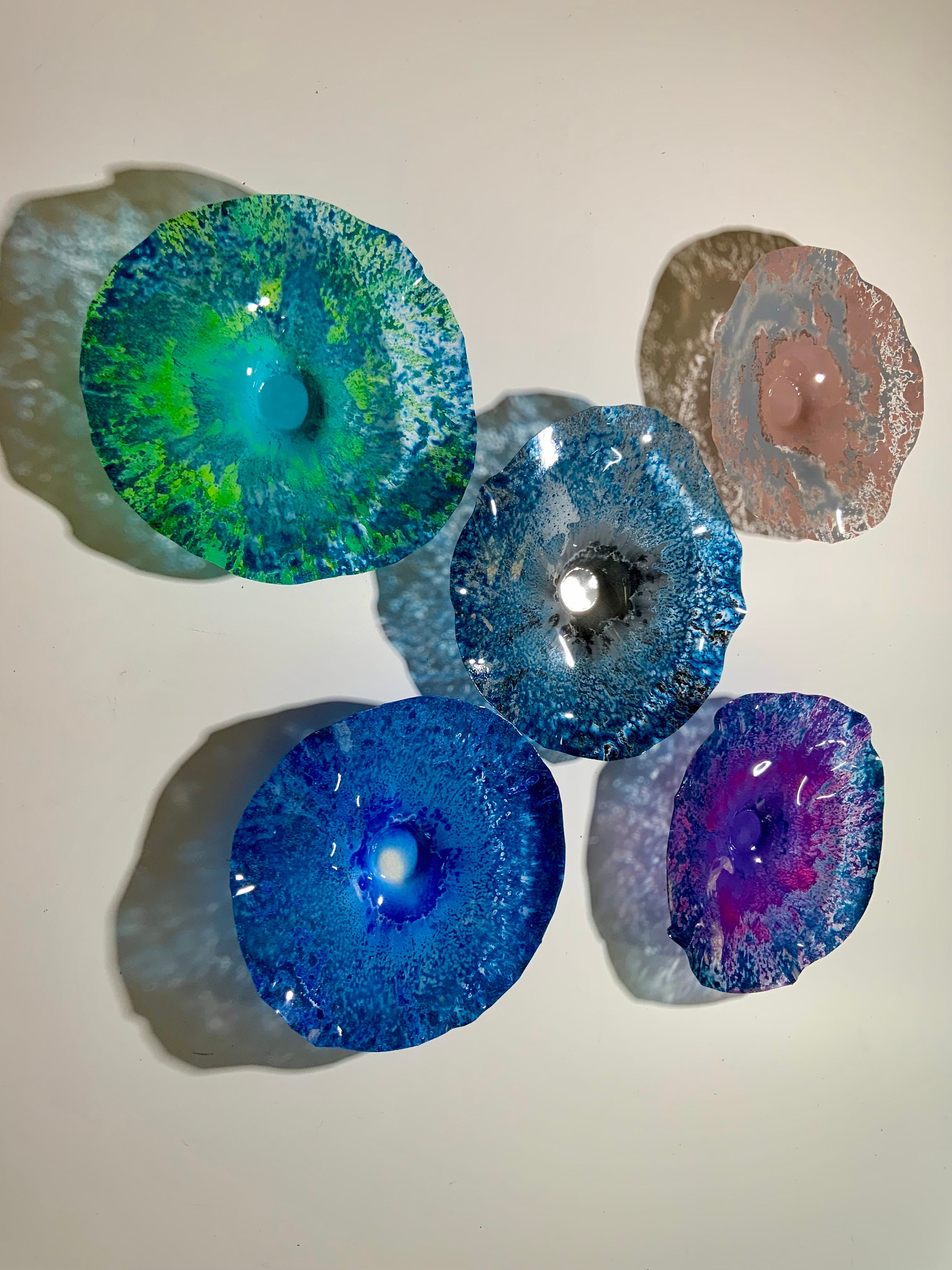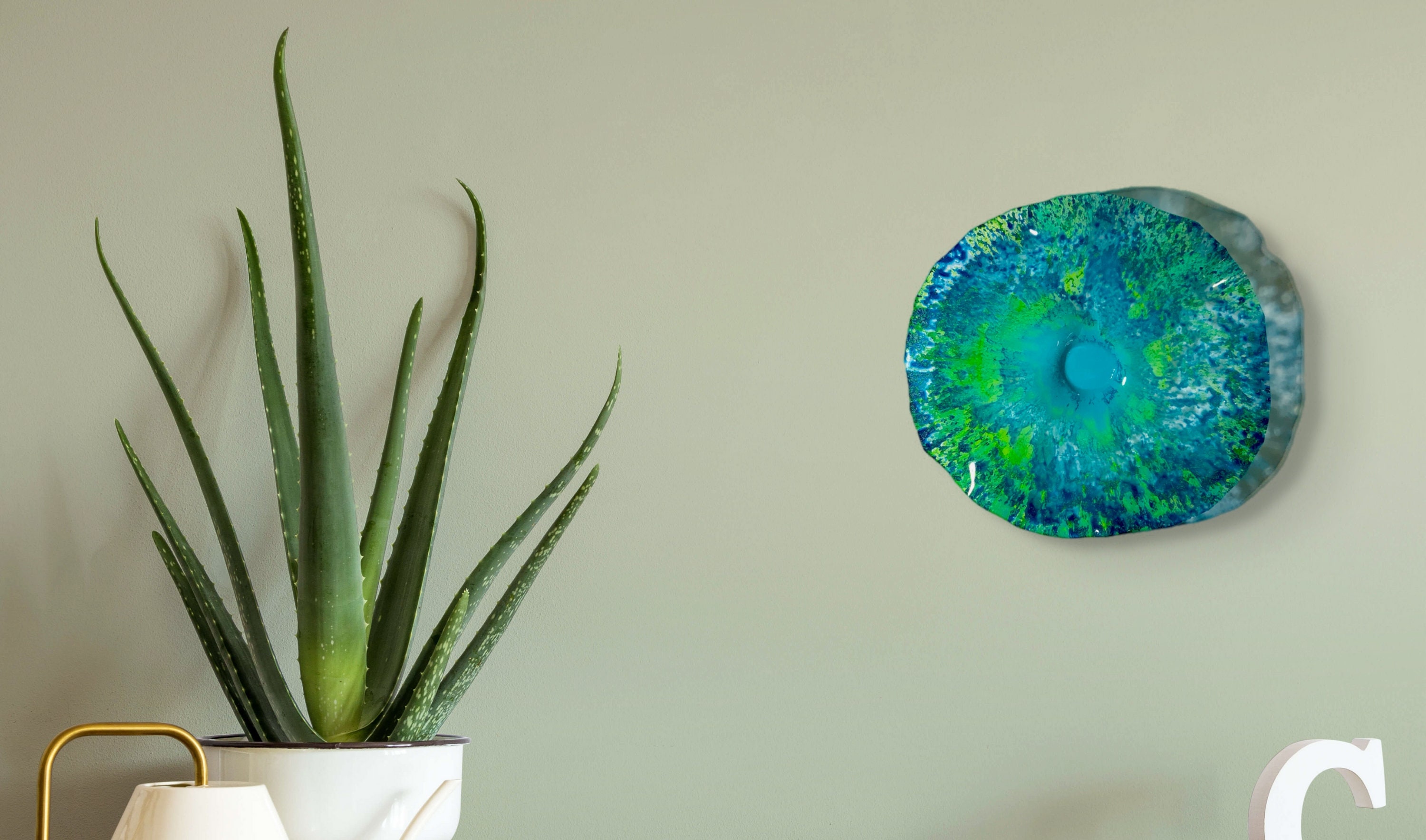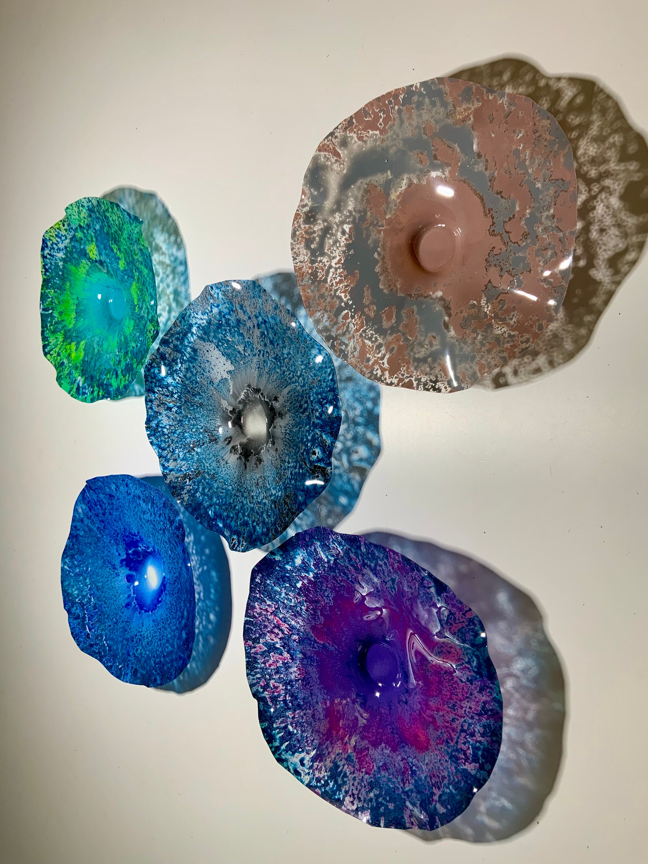 Our wall flowers are made from sustainable recycled PET as in a water bottle. Each piece contains at least 50% recycled polyethylene terphalate (rPET)