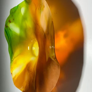Each collectible piece is unique, no two are alike. This permanent, colorful, eye catching art looks and feels like glass. It shimmers in the light resembling water. They are very DURABLE AND LIGHTWEIGHT. These flowers are easy to hang, are all weather and UV resistant. Great for indoor or outdoor decorating.