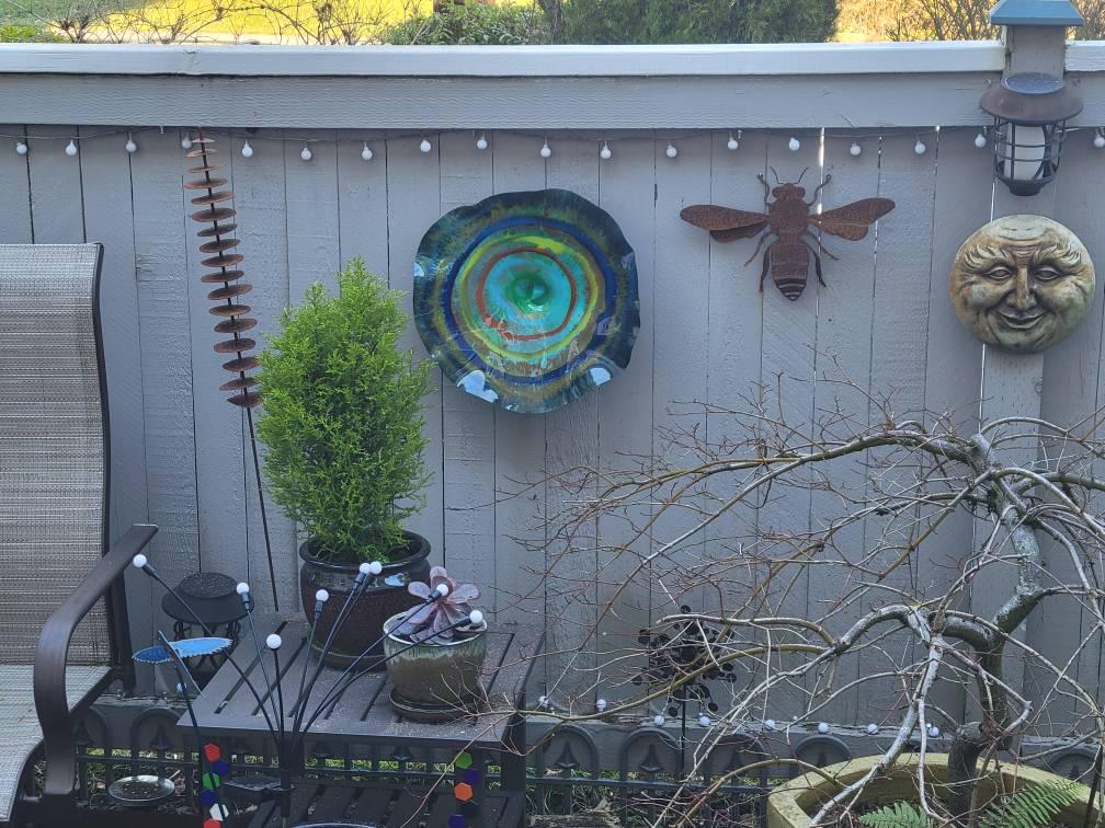 Each collectible piece is unique, no two are alike. This permanent, colorful, eye catching art looks like glass. It shimmers in the light resembling water. They are very DURABLE AND LIGHTWEIGHT. These flowers are easy to hang, all weather , and will not fade in the sun. Great for indoor or outdoor decorating.