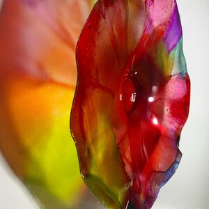From the wall, they look like glass. The bonuses are that these flowers are light, unbreakable, environmentally friendly, easy to hang, and have no damage to the wall due to drilling for would-be-heavy traditional glass flowers.