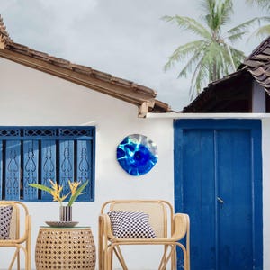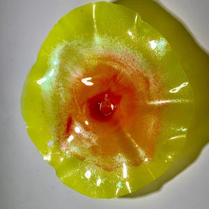 Each collectible piece is unique, no two are alike. This permanent, colorful, eye catching art looks like glass. It shimmers in the light resembling water. They are very DURABLE AND LIGHTWEIGHT. Great for indoor or outdoor decorating.