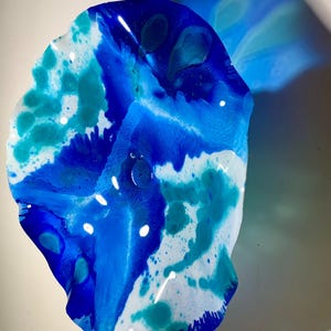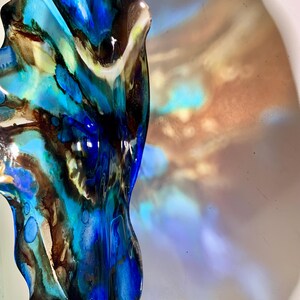 Each collectible piece is unique, no two are alike. This permanent, colorful, eye catching art looks like glass. It shimmers in the light resembling water. They are very DURABLE AND LIGHTWEIGHT. Great for indoor or outdoor decorating.