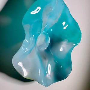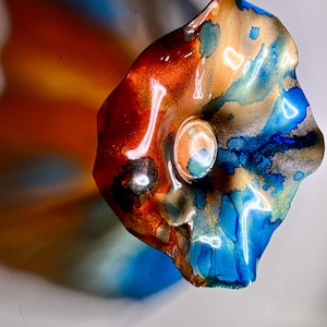 Each collectible piece is unique, no two are alike. This permanent, colorful, eye catching art looks and feels like glass. It shimmers in the light resembling water. They are very DURABLE AND LIGHTWEIGHT. These flowers are easy to hang, are all weather and UV resistant. Great for indoor or outdoor decorating.