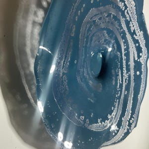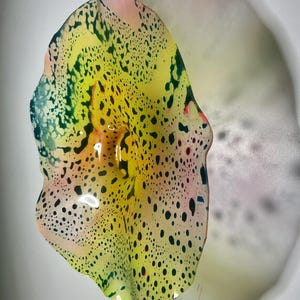 Each collectible piece is unique, no two are alike. This permanent, colorful, eye catching art looks and feels like glass. It shimmers in the light resembling water. They are very DURABLE AND LIGHTWEIGHT. These flowers are easy to hang, all weather and UV resistant. Great for indoor or outdoor decorating.