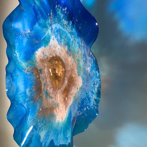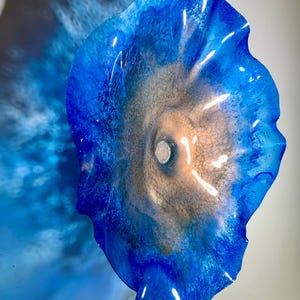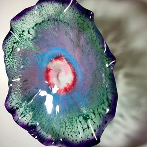 Each collectible piece is unique, no two are alike. This permanent, colorful, eye catching art looks like glass. It shimmers in the light resembling water. They are very DURABLE AND LIGHTWEIGHT. Great for indoor or outdoor decorating.