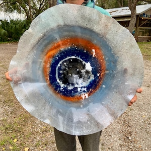 Original XX large giant wall art 24” aqua/blue/white handmade upcycled plastic beach home decor/looks like glass/easy to hang/lightweight