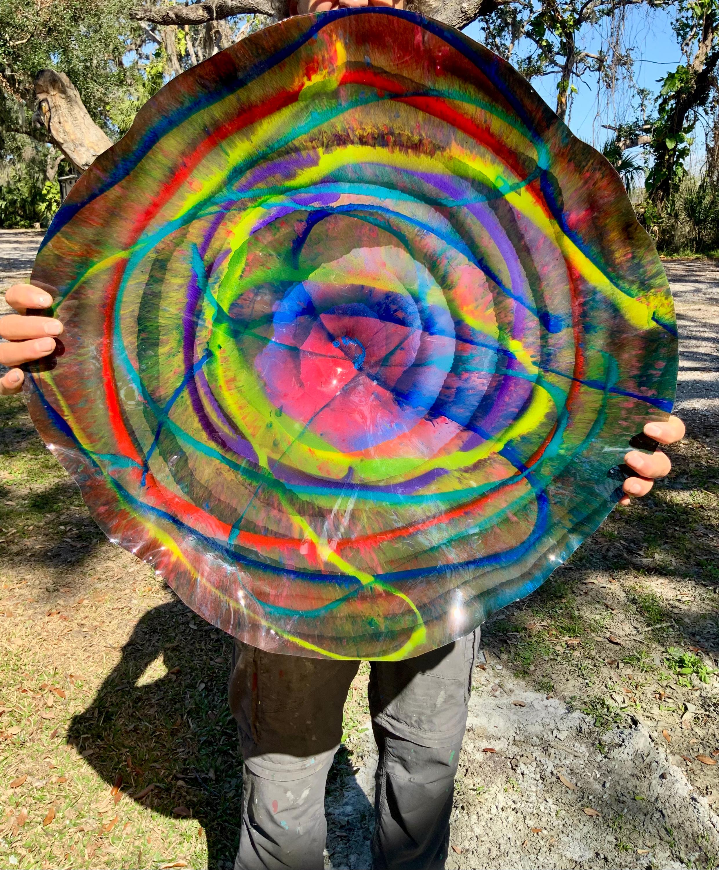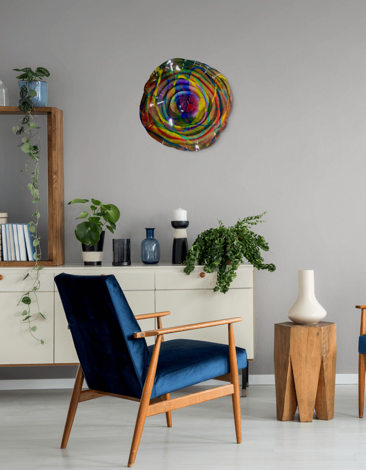New XX large giant colorful wall art 24” rainbow/black handmade eco-friendly plastic home decor/looks like glass/easy to hang/lightweight