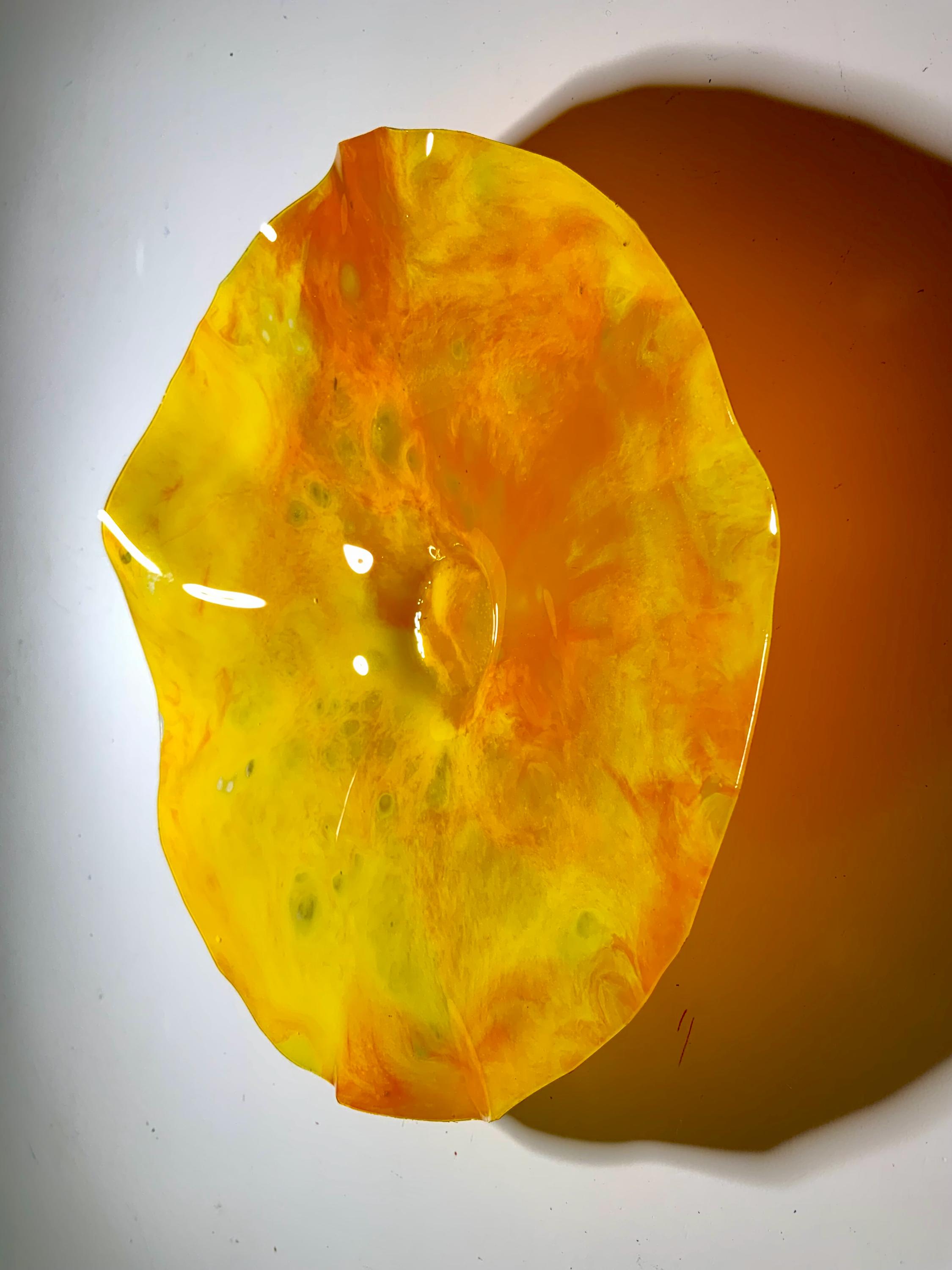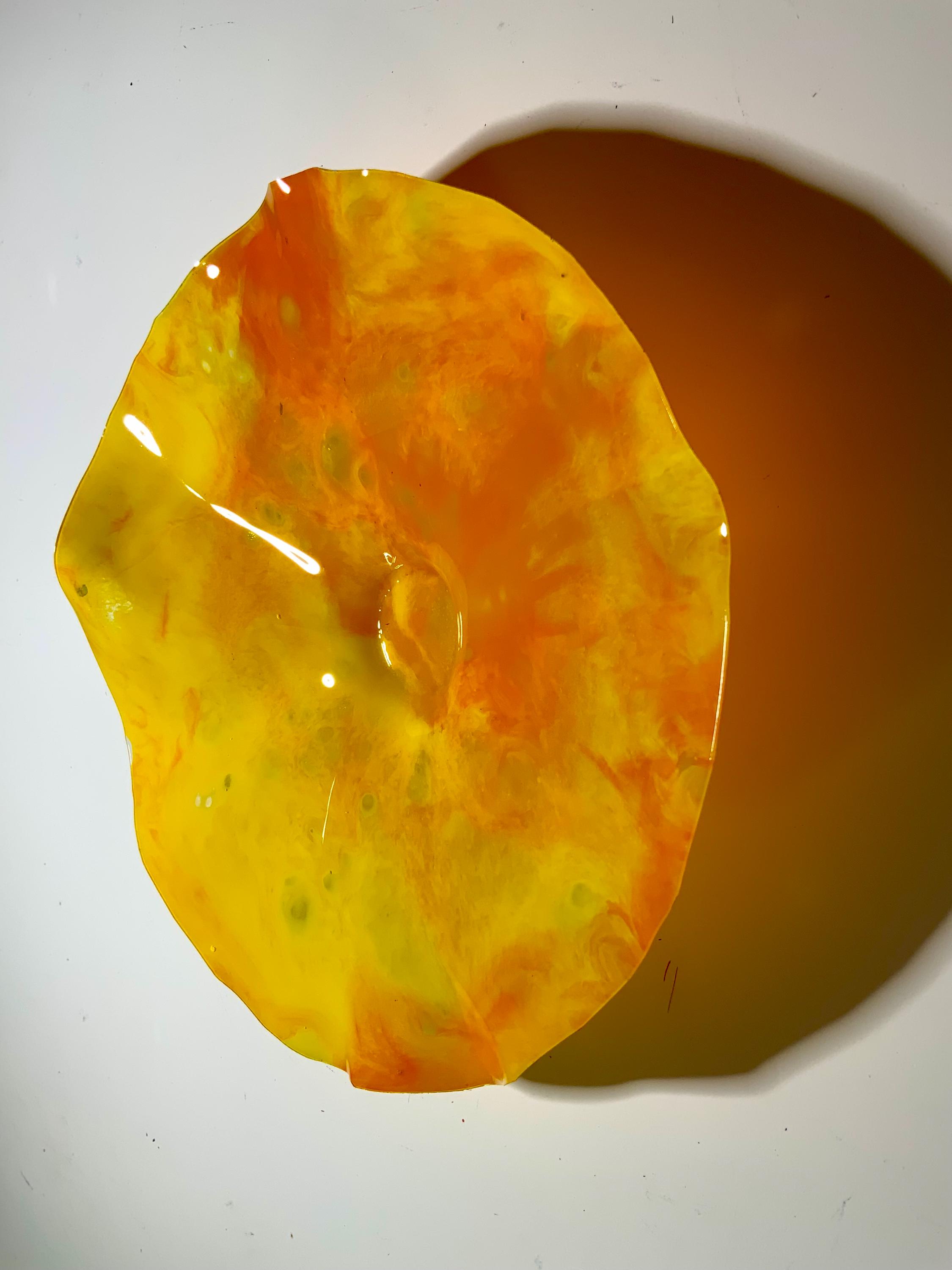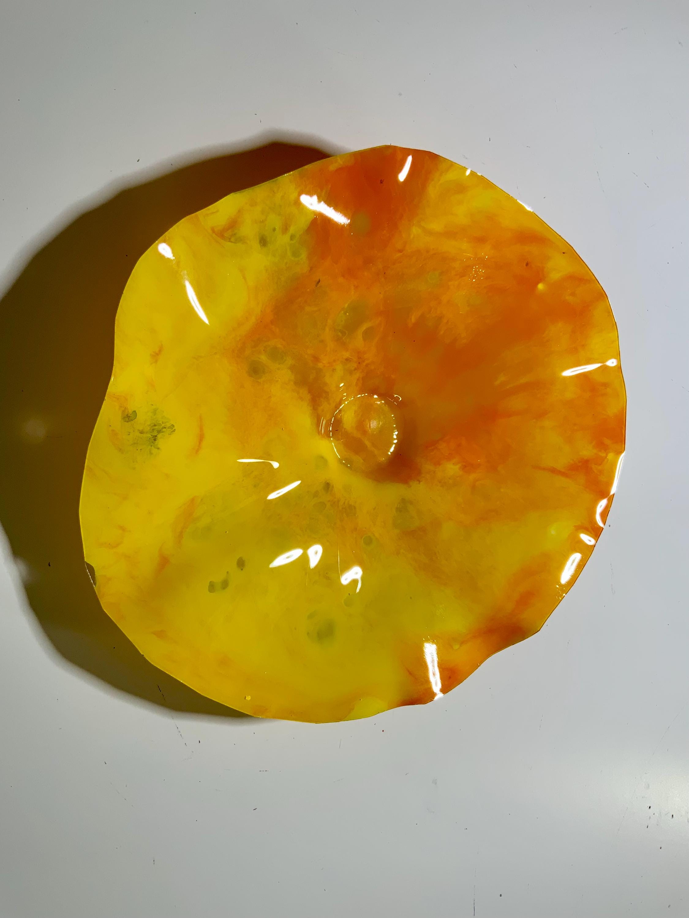 Original Ocean Arts handmade eco friendly plastic wall flower yellow/orange small 9” looks like glass/outdoor patio/boho happy home decor