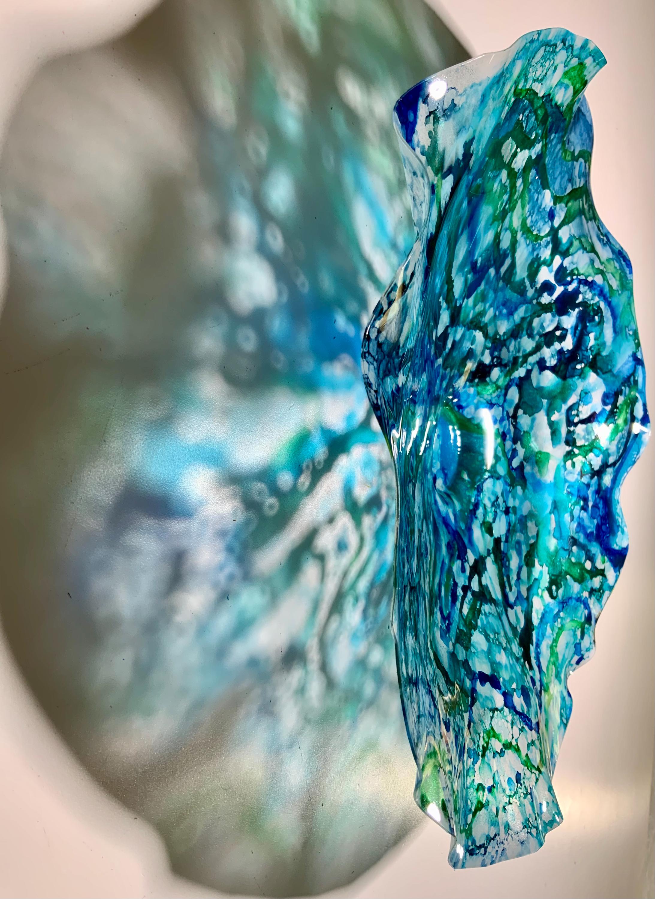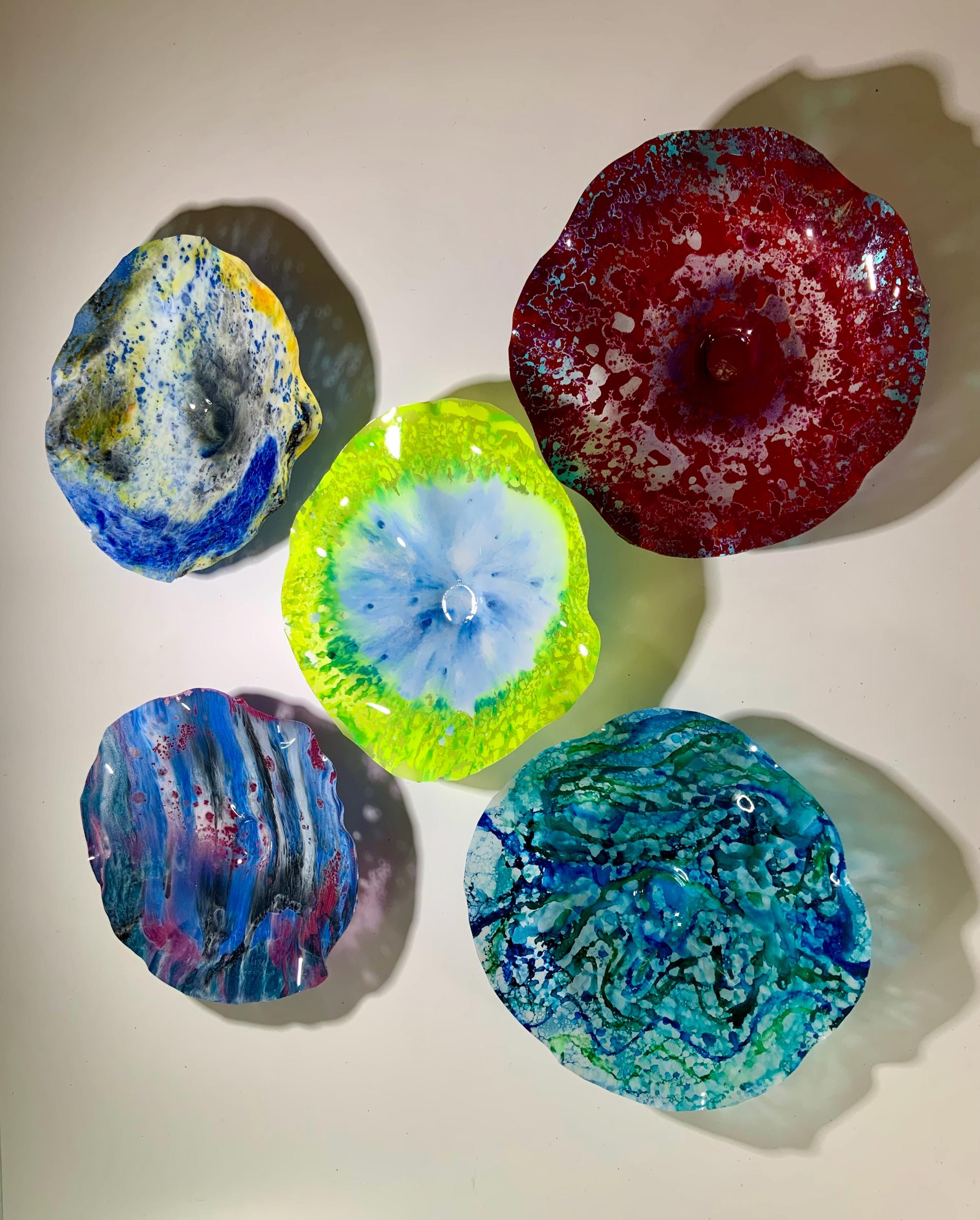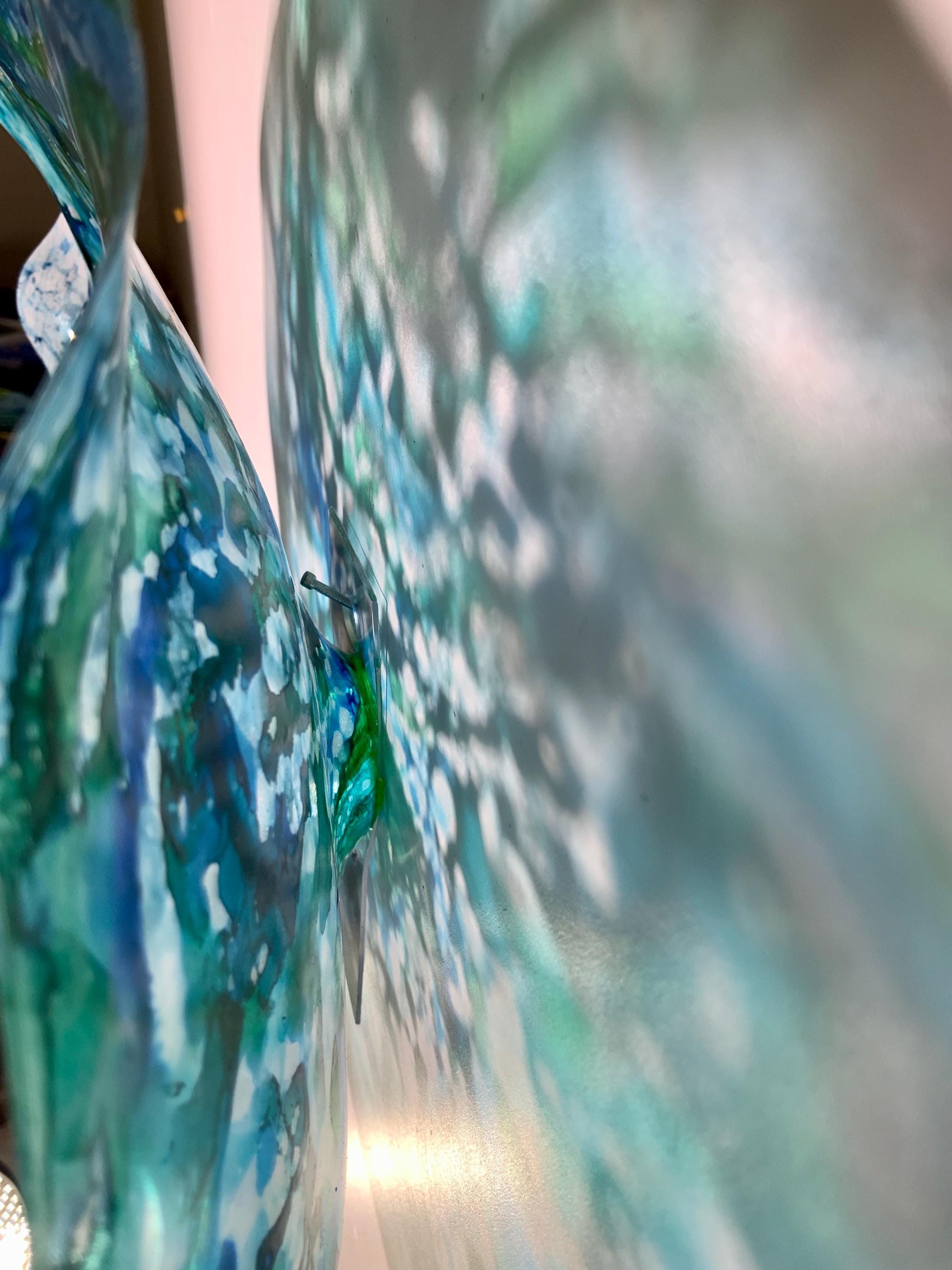 From the wall, they look like glass. The bonuses are that these flowers are light, unbreakable, environmentally friendly, easy to hang, and have no damage to the wall due to drilling for would-be-heavy traditional glass flowers.
