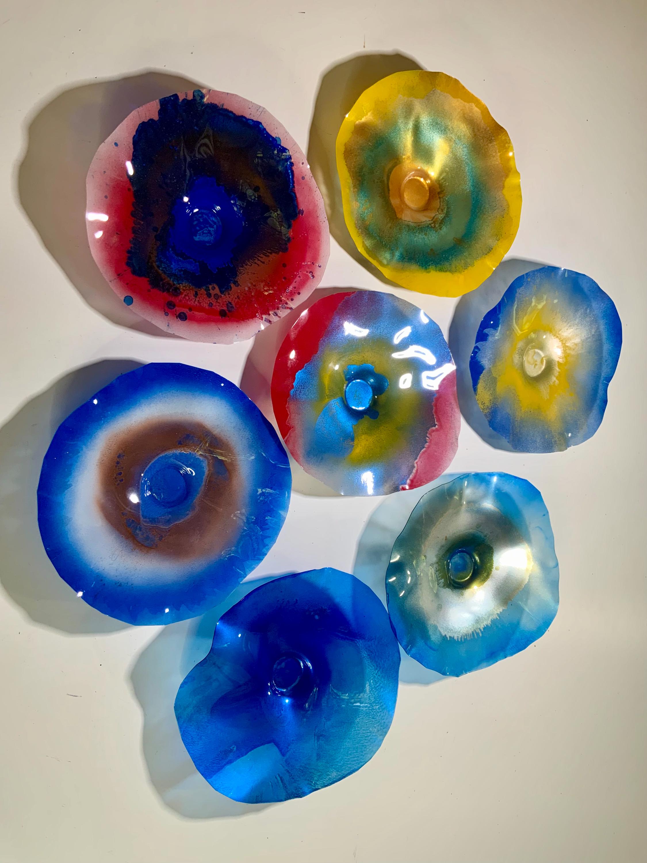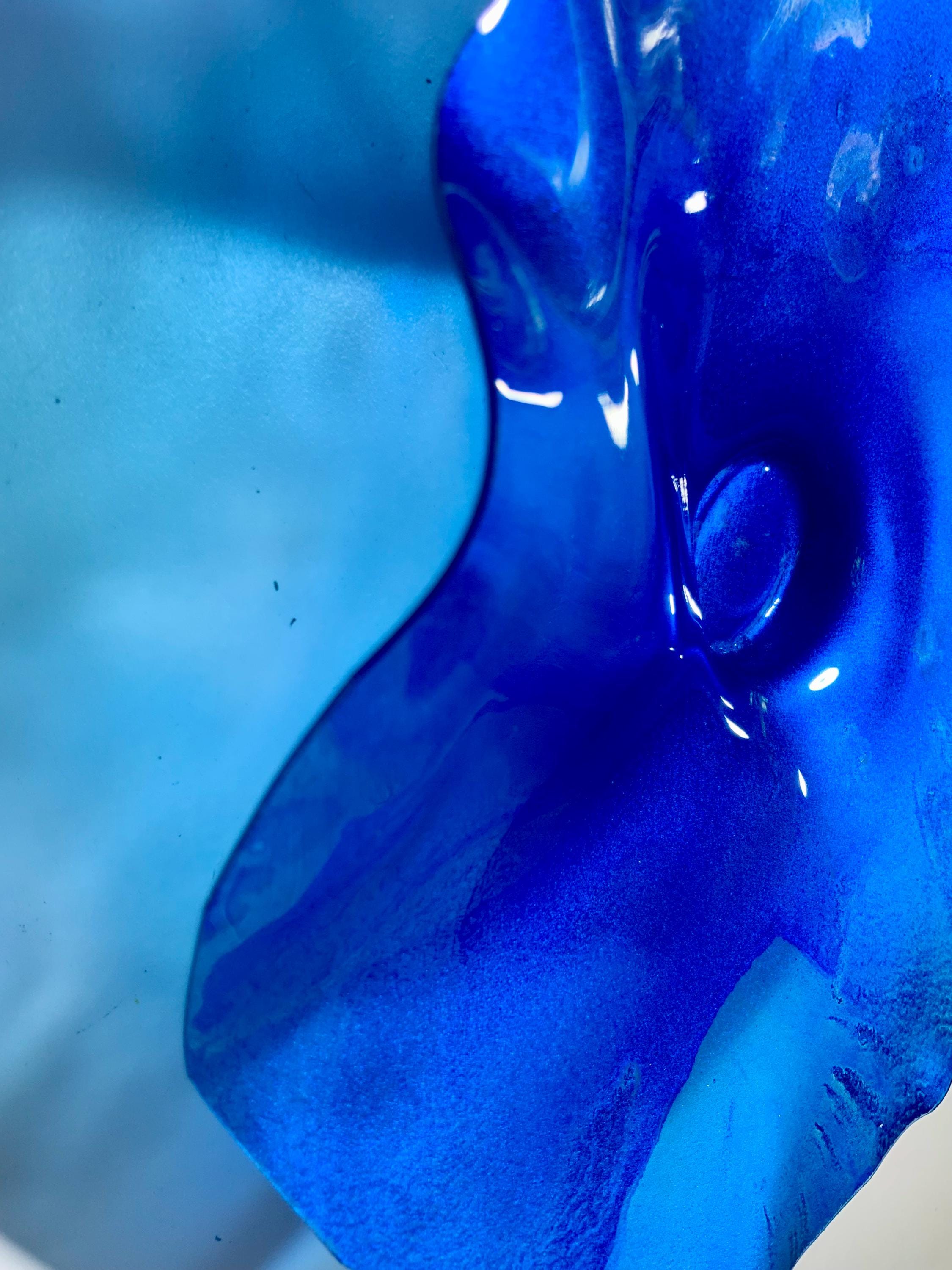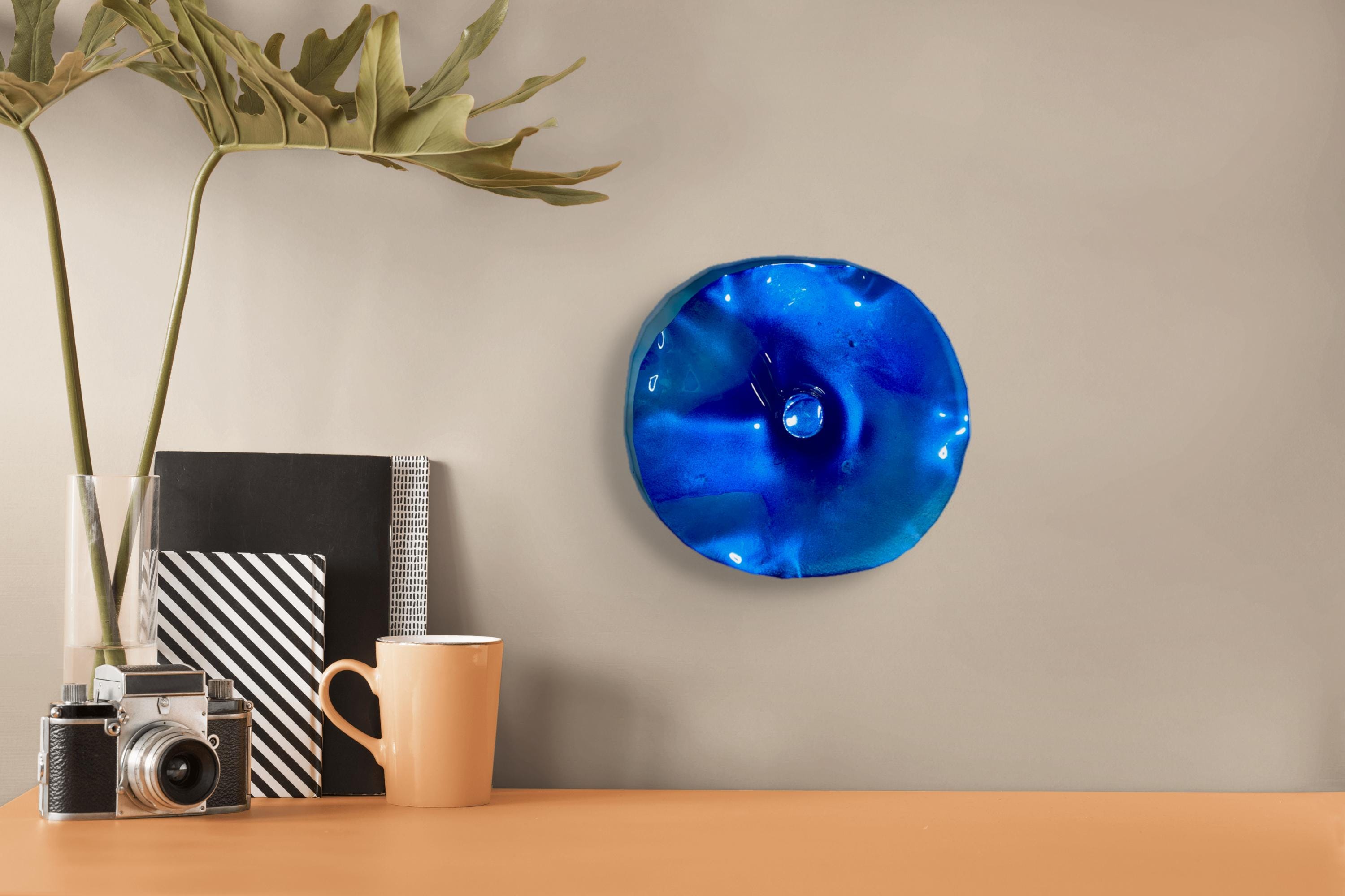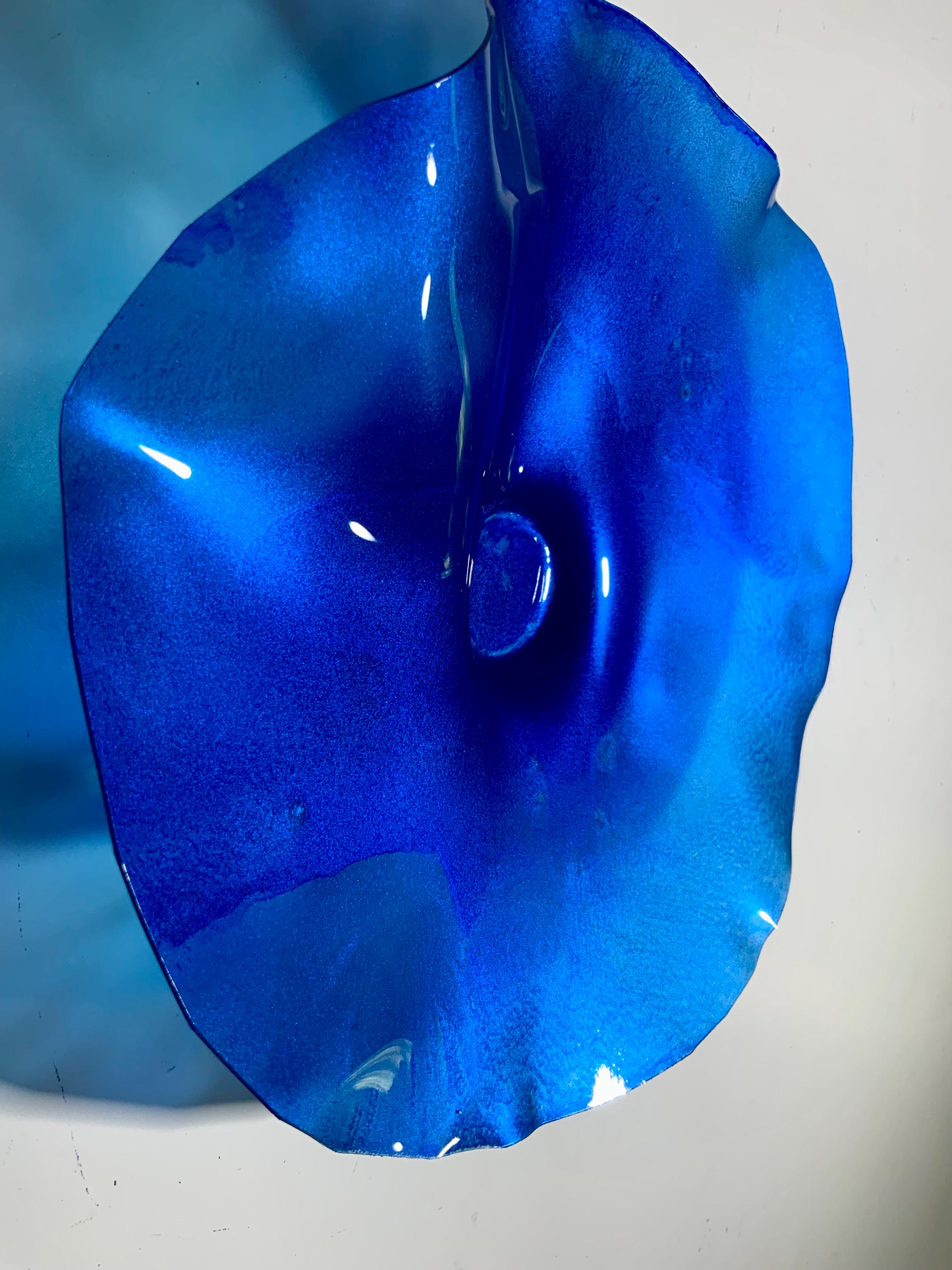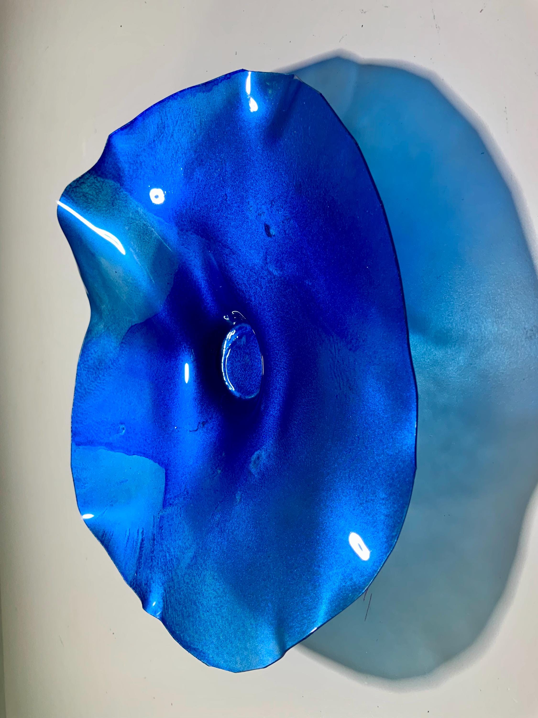 Handmade recycled plastic home decor Small Wall flower 9” monochromatic blue/coastal beach wall hanging decor/looks like glass/Todd Lynd art