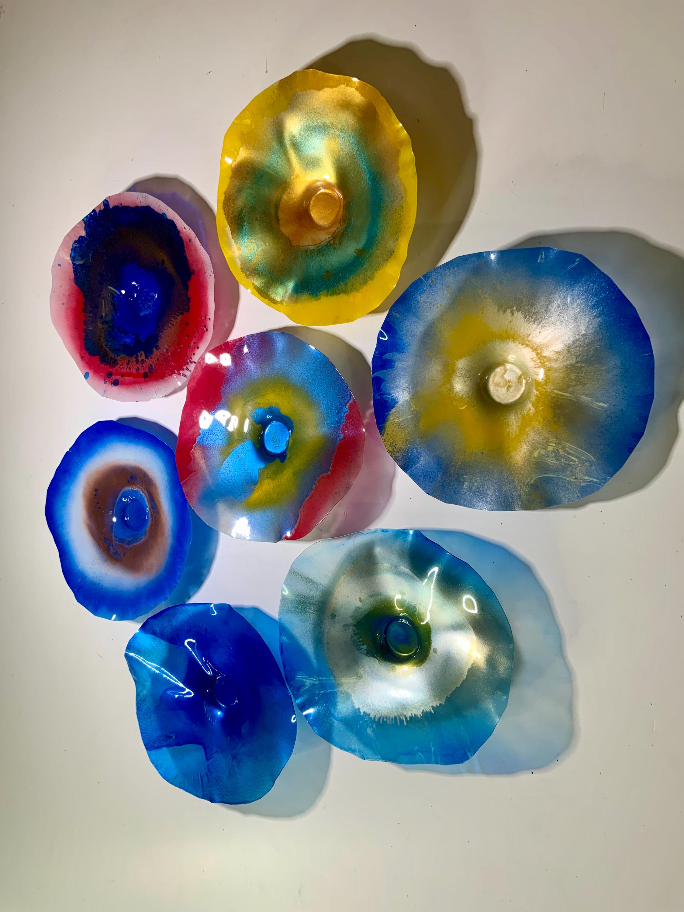 Each collectible piece is unique, no two are alike. This permanent, colorful, eye catching art looks and feels like glass. It shimmers in the light resembling water. They are very DURABLE AND LIGHTWEIGHT. This flower is easy to hang all weather and UV resistant. Great for indoor or outdoor decorating.