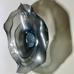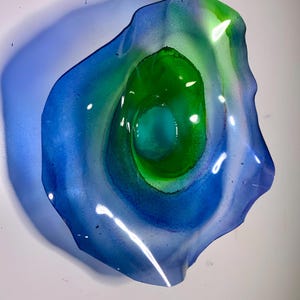 Each collectible piece is unique, no two are alike. This permanent, colorful, eye catching art looks and feels like glass. It shimmers in the light resembling water. They are very DURABLE AND LIGHTWEIGHT. These flowers are easy to hang ,are all weather and UV resistant. Great for indoor or outdoor decorating.