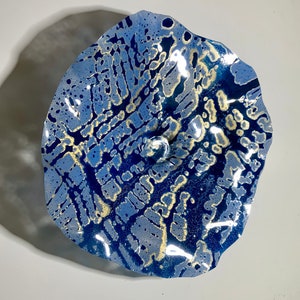 Brilliant flower creative home wall sculpture art medium 13” yellow/silver/blue handmade eco-friendly plastic/looks like glass/gift for her