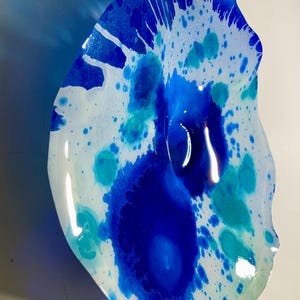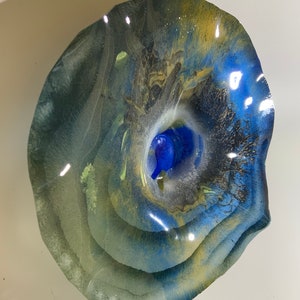 Each collectible piece is unique, no two are alike. This permanent, colorful, eye catching art looks and feels like glass. It shimmers in the light resembling water. They are very DURABLE AND LIGHTWEIGHT. These flowers are easy to hang, all weather and UV resistant. Great for indoor or outdoor decorating.