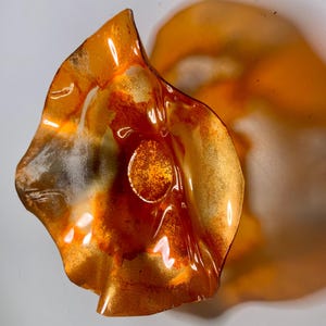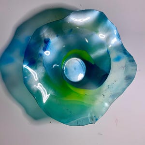 Each collectible piece is unique, no two are alike. This permanent, colorful, eye catching art looks and feels like glass. It shimmers in the light resembling water. They are very DURABLE AND LIGHTWEIGHT. These flowers are easy to hang, are all weather and UV resistant. Great for indoor or outdoor decorating.
