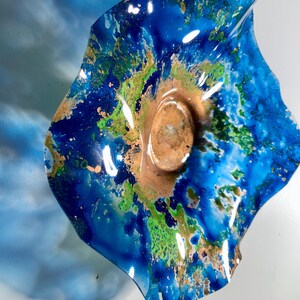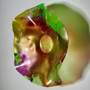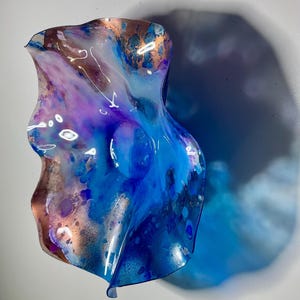 Each collectible piece is unique, no two are alike. This permanent, colorful, eye catching art looks and feels like glass. It shimmers in the light resembling water. They are very DURABLE AND LIGHTWEIGHT. This flower is easy to hang all weather and UV resistant. Great for indoor or outdoor decorating.