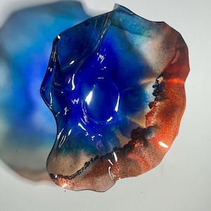 Original wall plate orange/green/purple handmade eco friendly plastic small 5” looks like glass/minimalist art/home decor wall hanging
