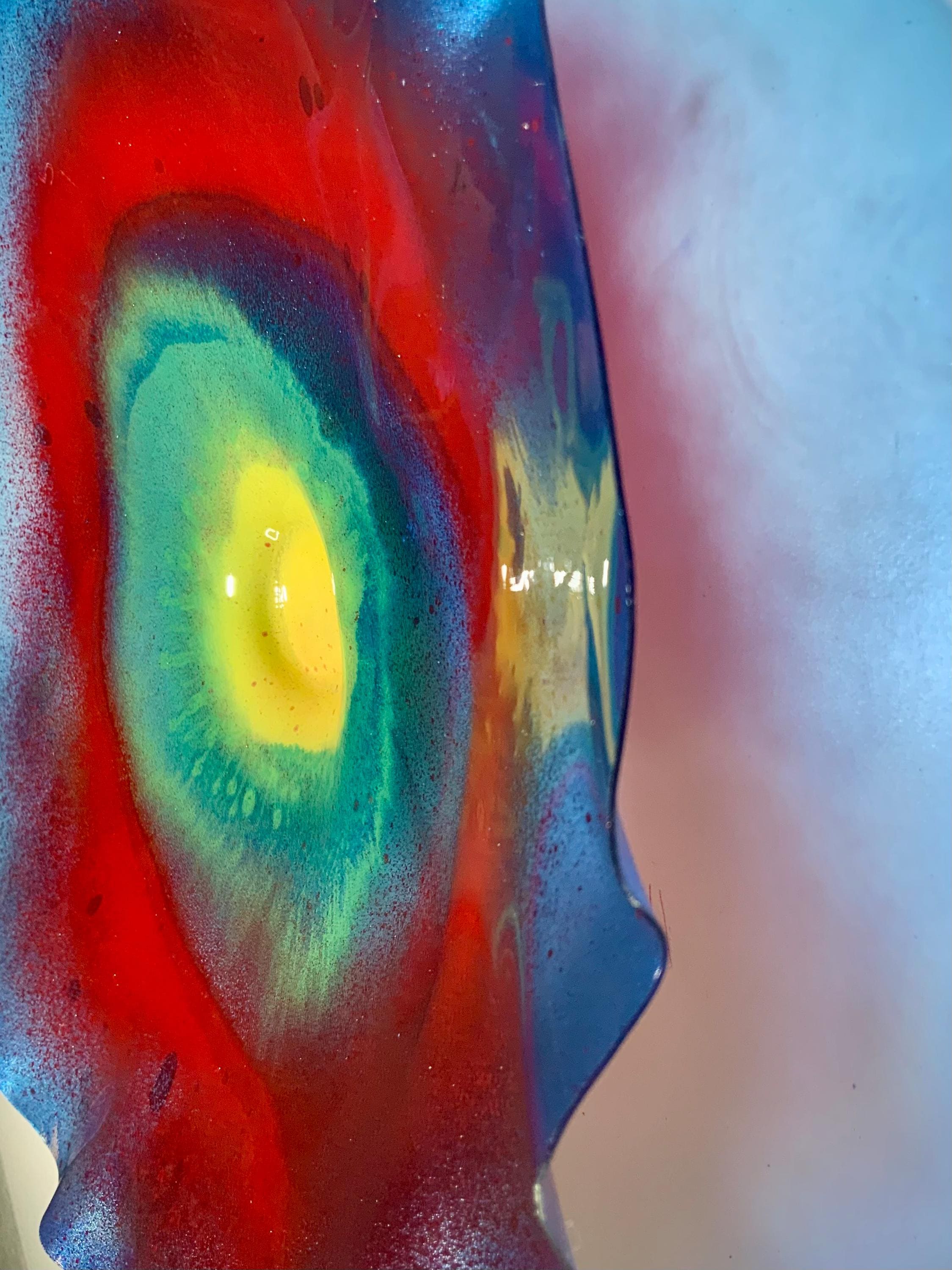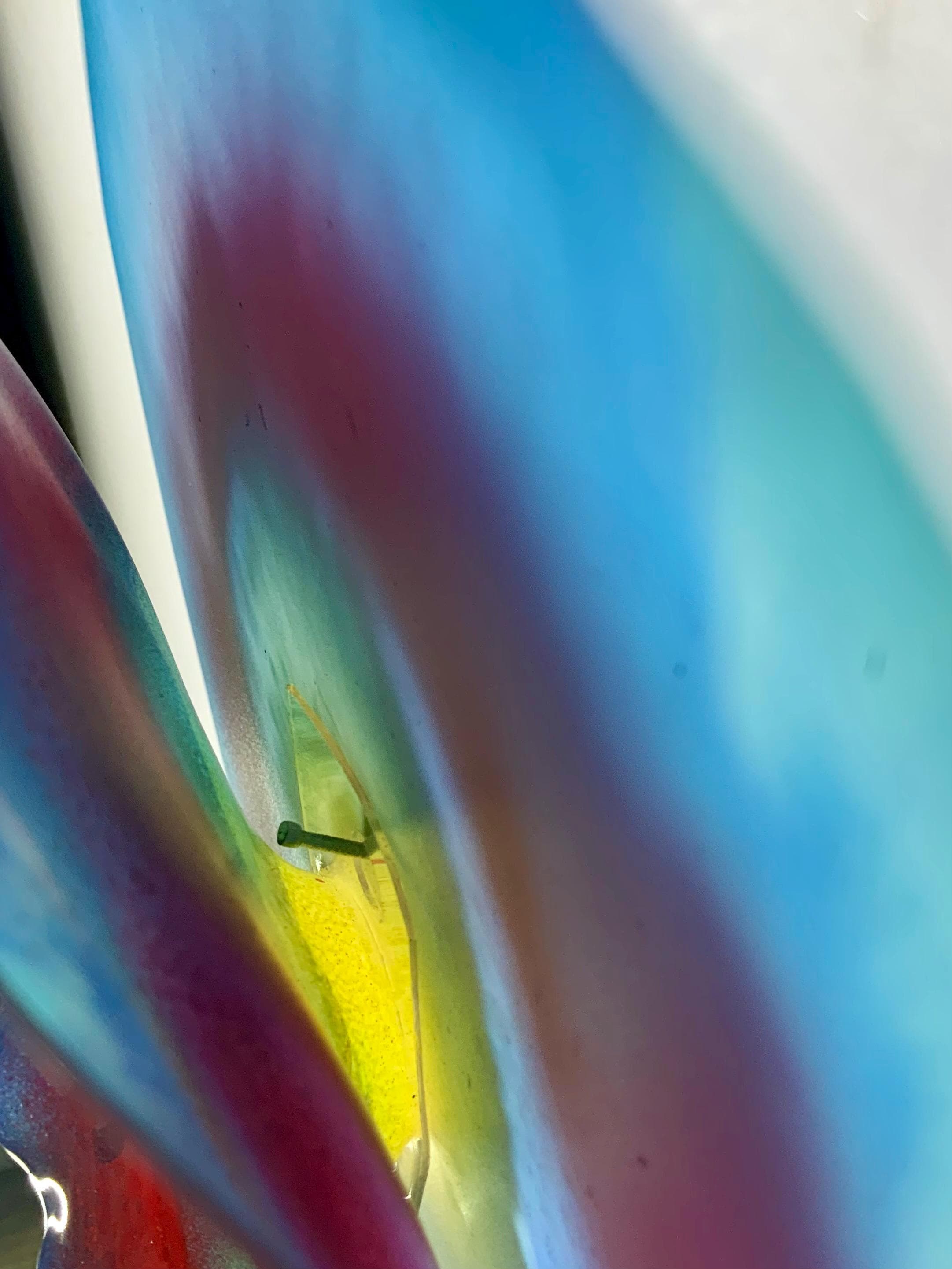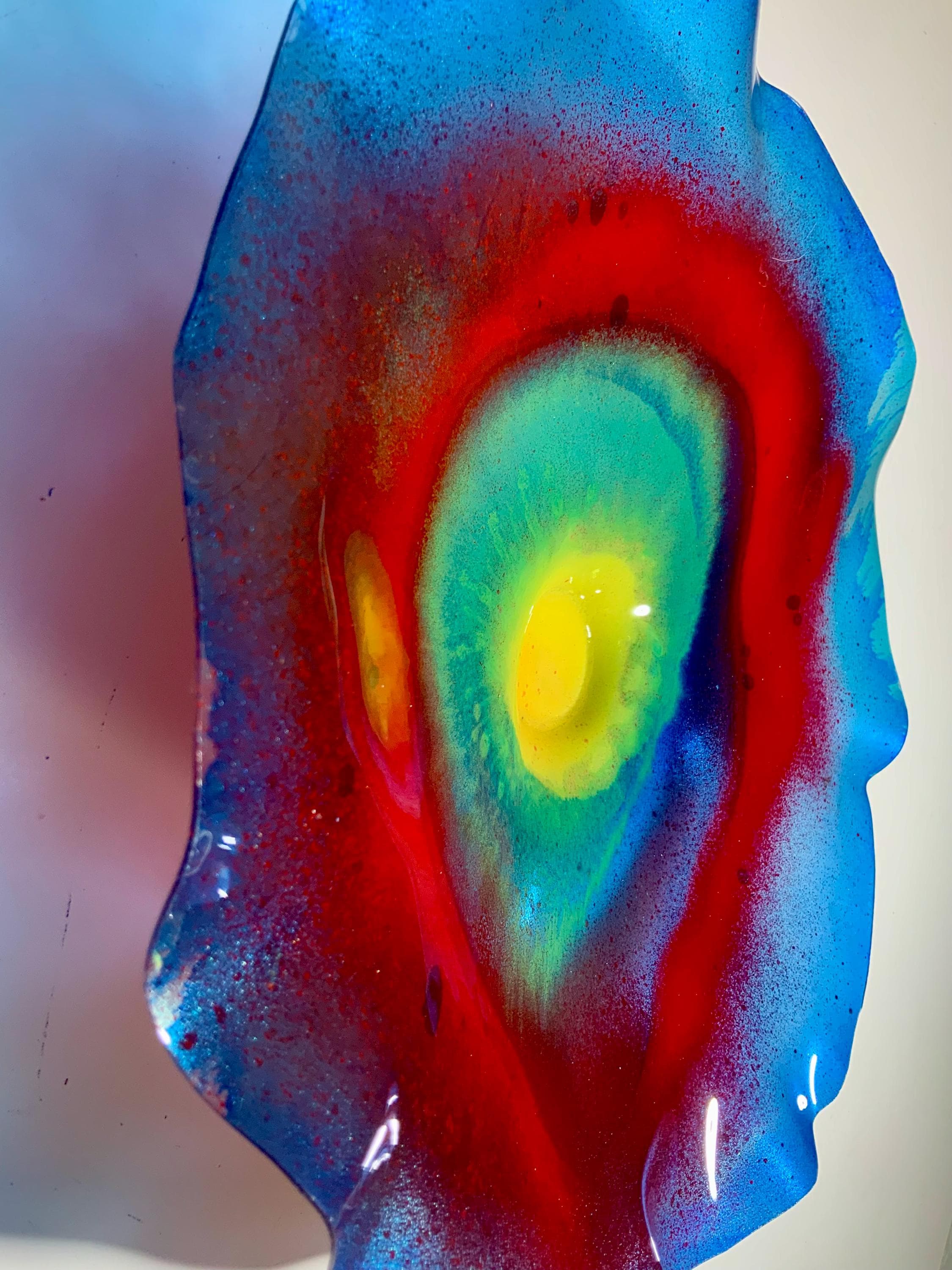 Each collectible piece is unique, no two are alike. This permanent, colorful, eye catching art looks and feels like glass. It shimmers in the light resembling water. They are very DURABLE, AND LIGHTWEIGHT. These flowers are easy to hang, all weather and will not fade in the sun. Great for indoor or outdoor decorating.