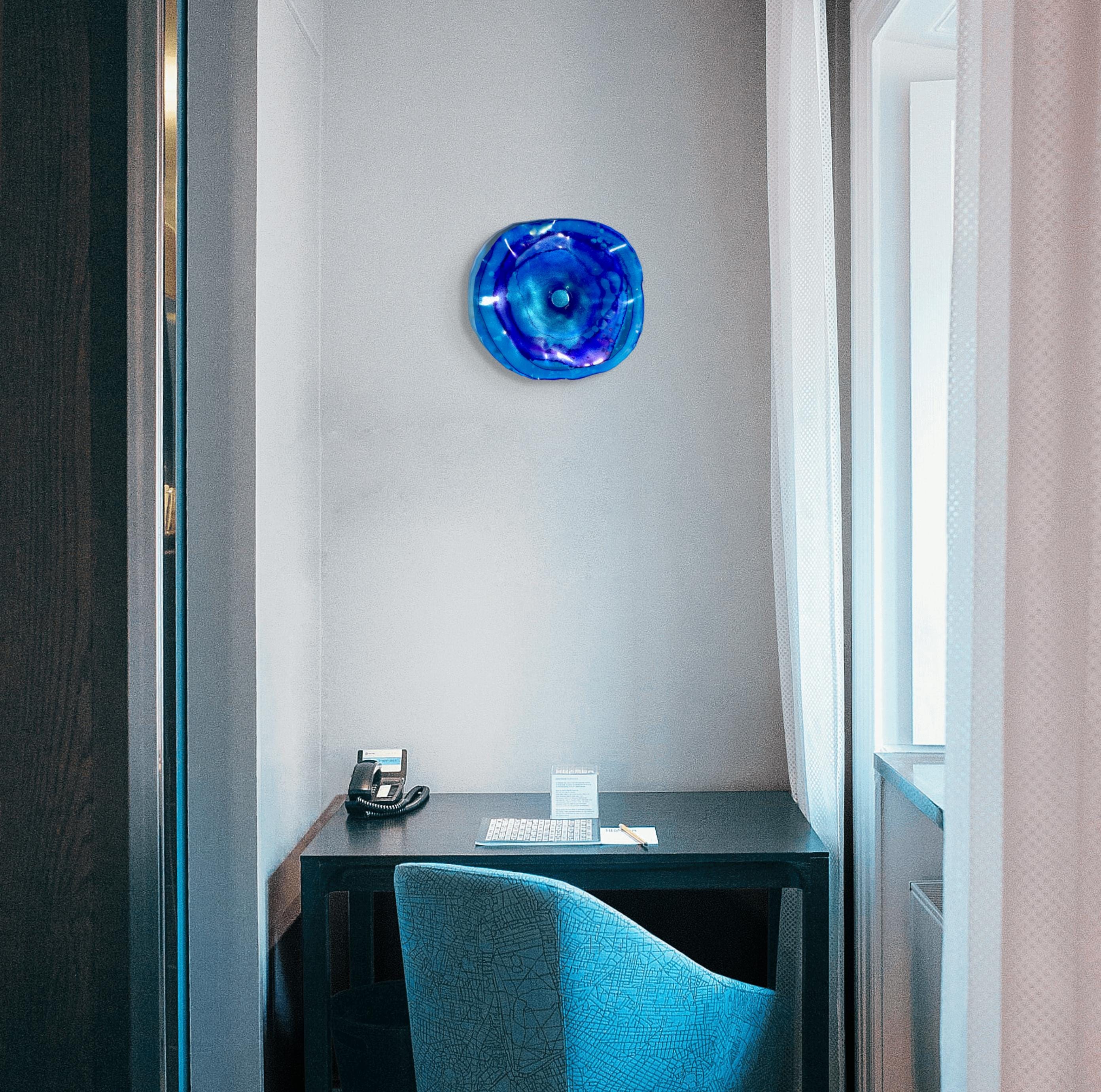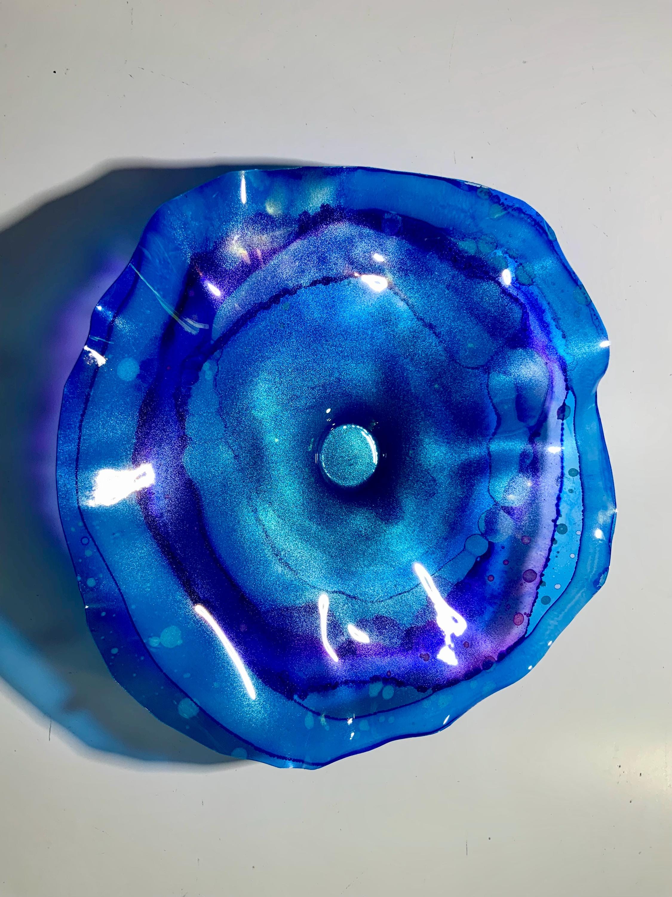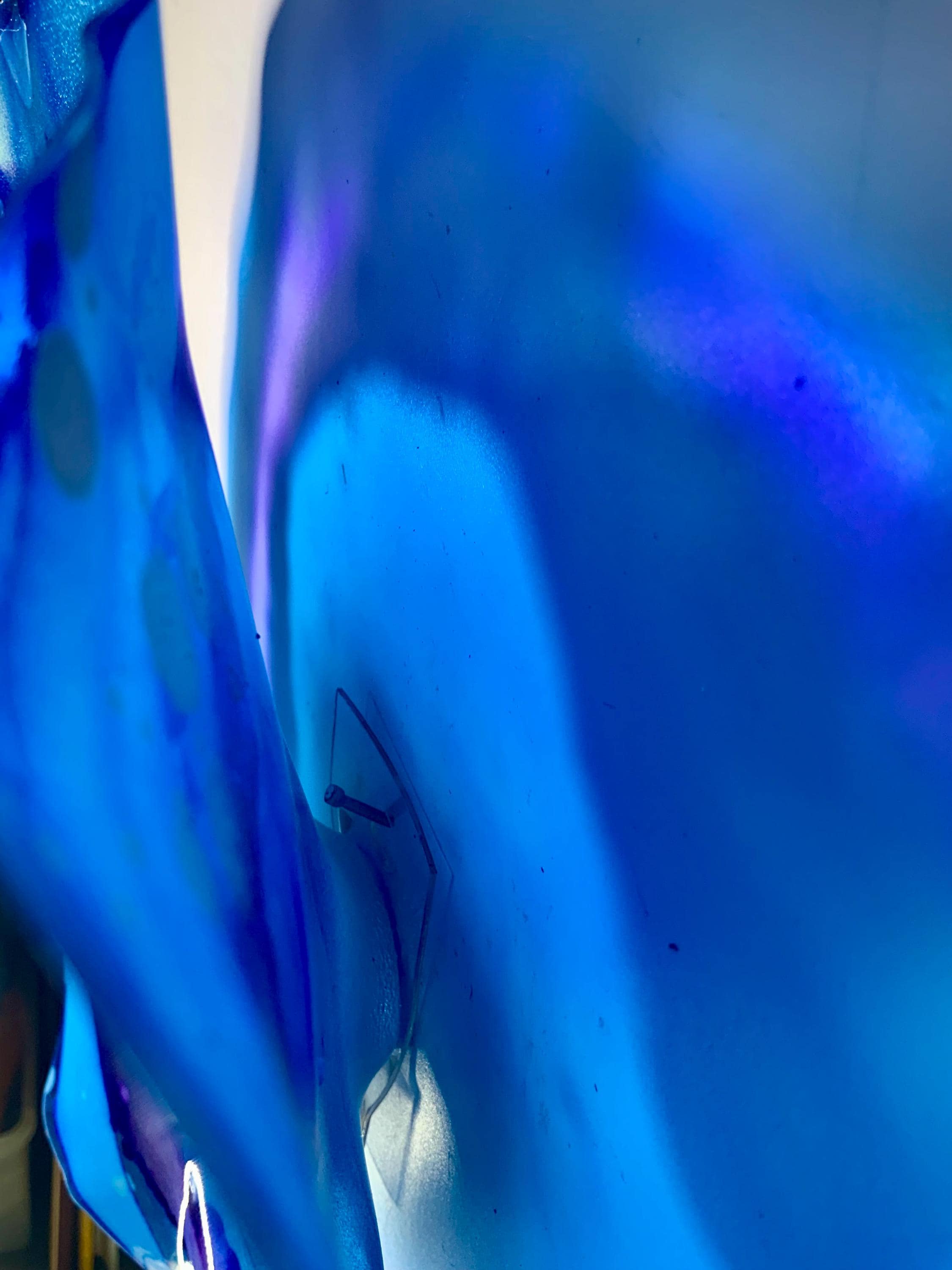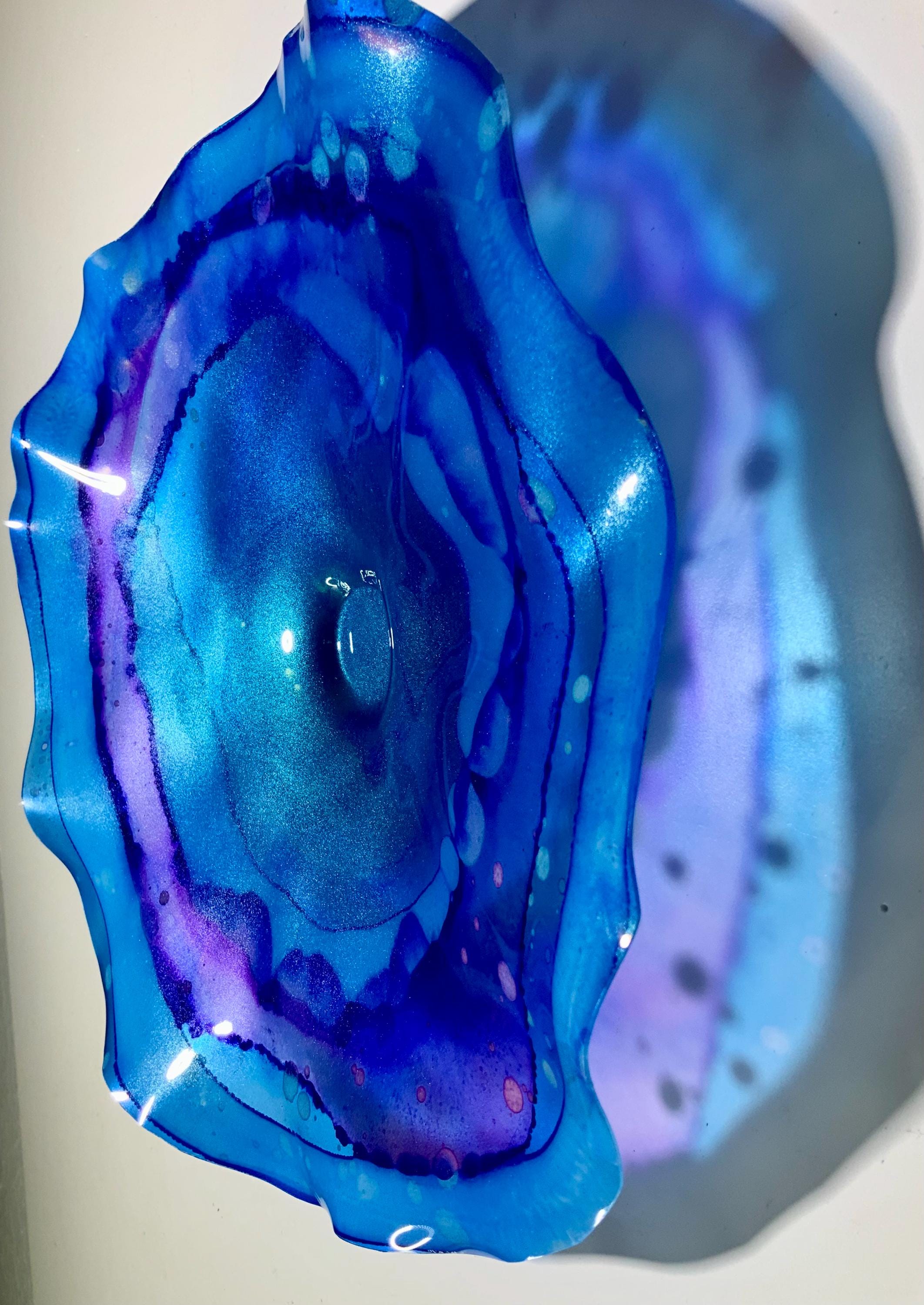Wall flower stunning blue and purple blend. The light filters through casting a colorful effect on the hanging surface.