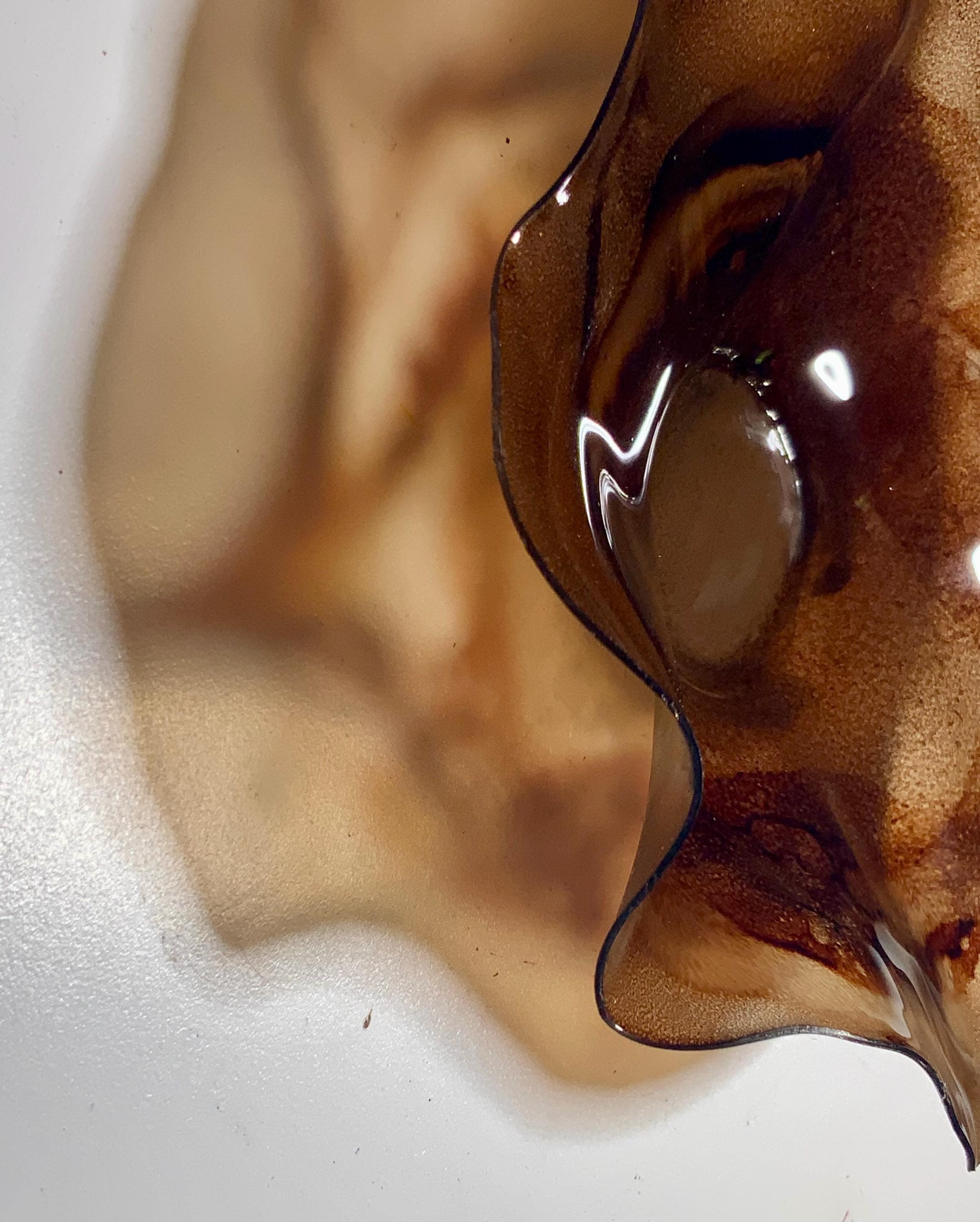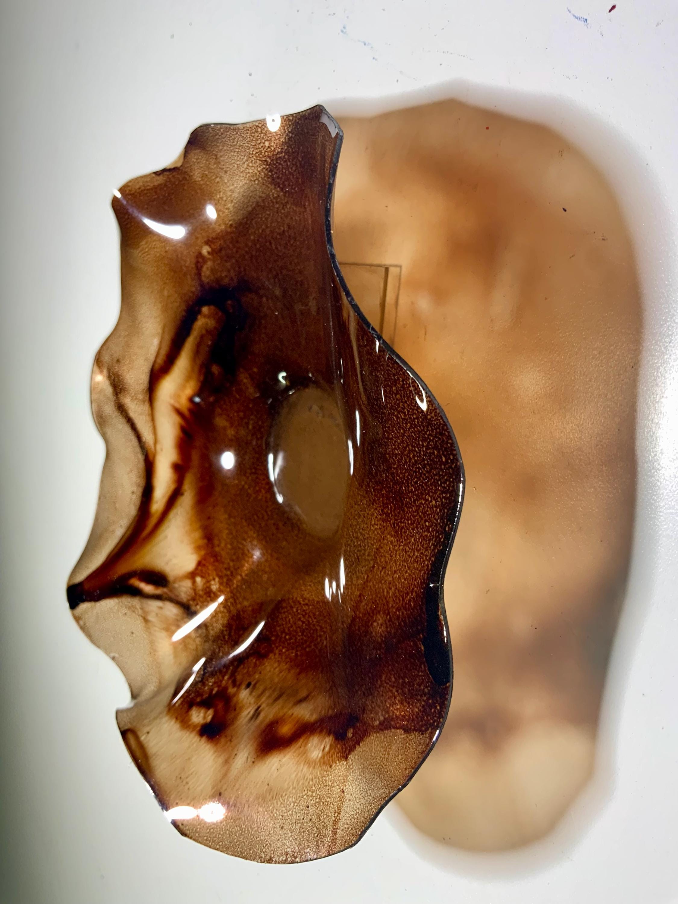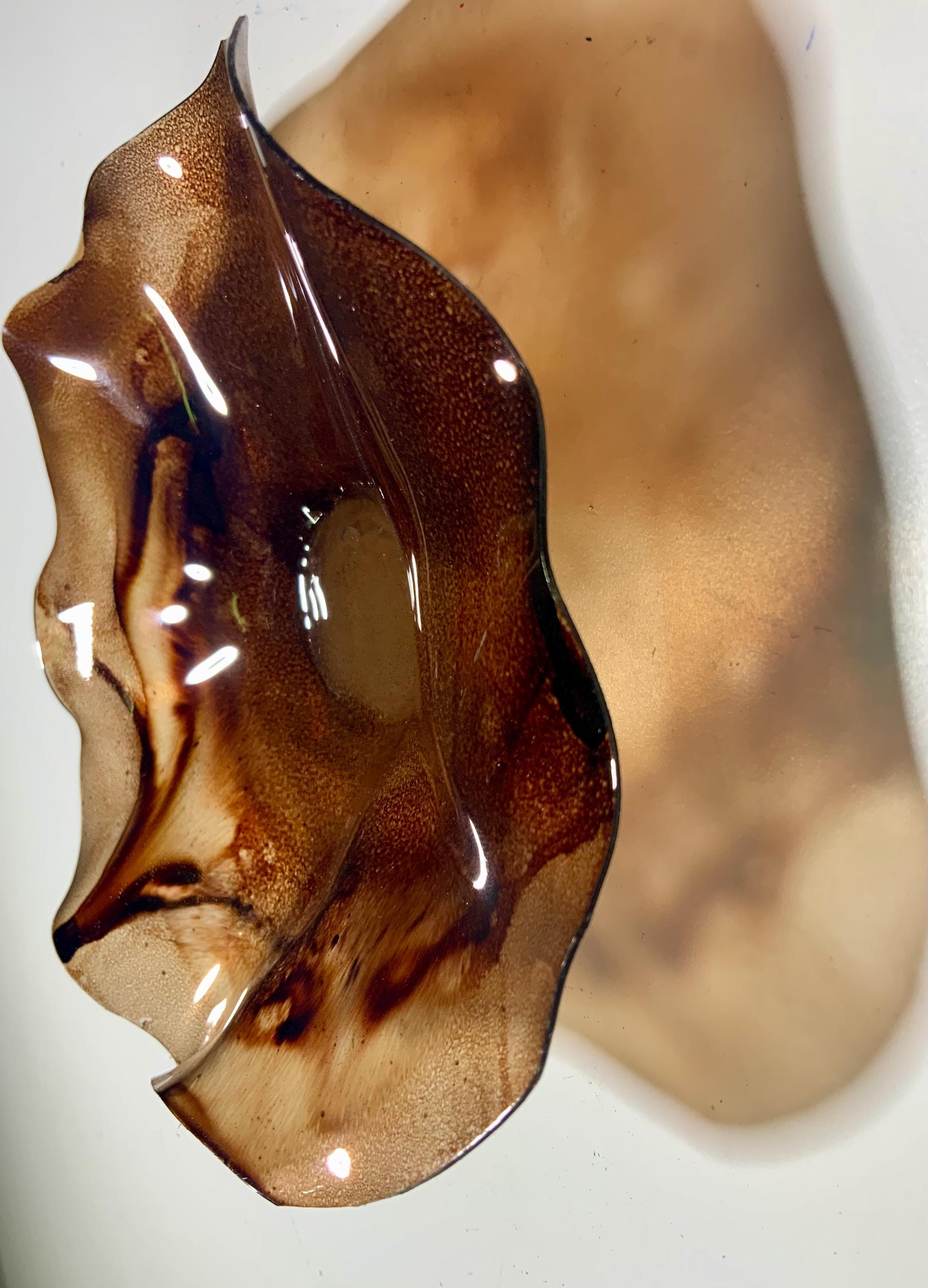 Stunning wall flower translucent brown. The light filters through casting a colorful glow to the hanging surface.
