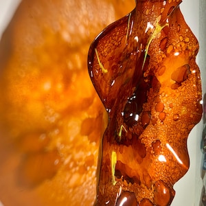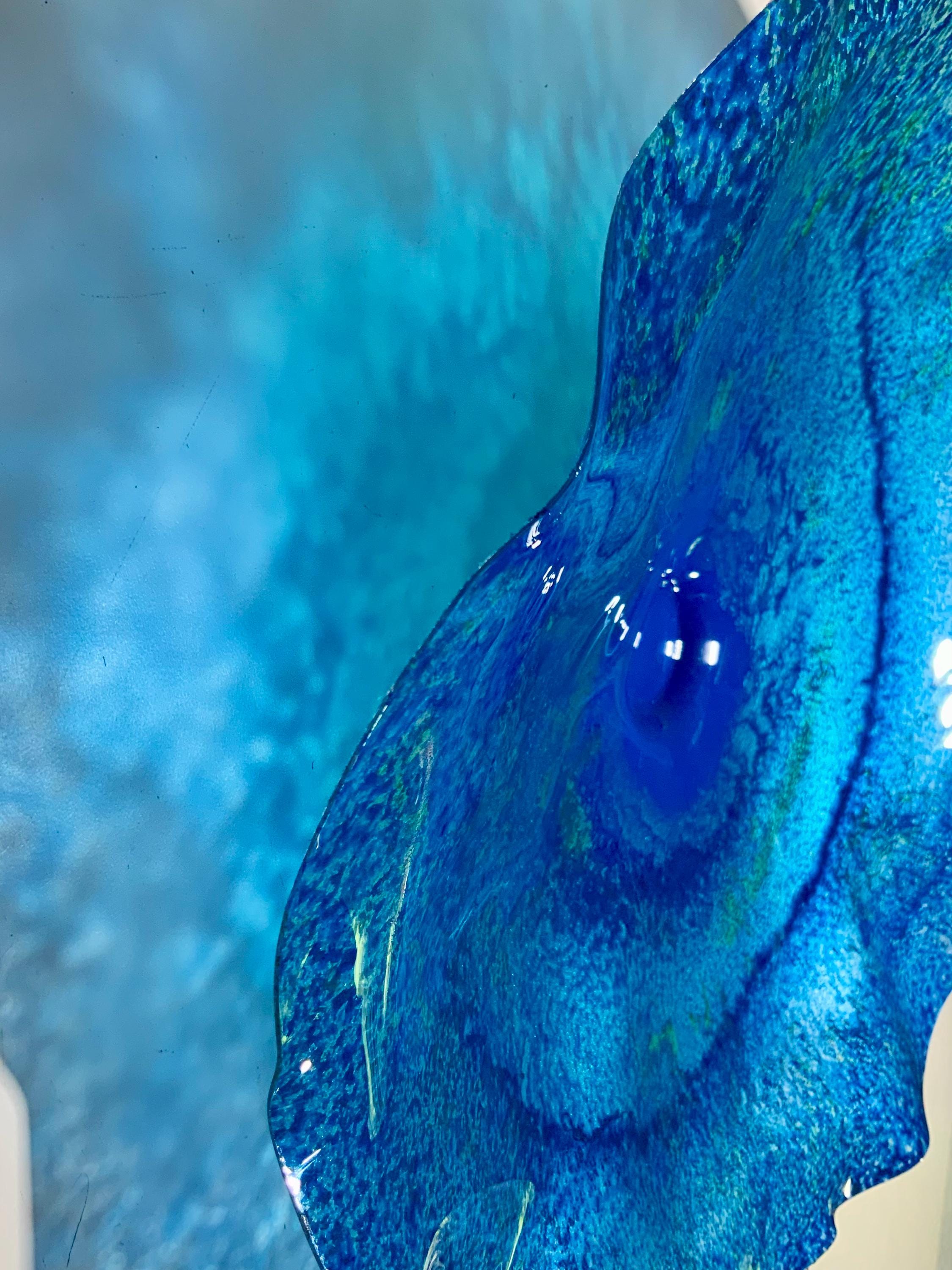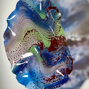 Each collectible piece is unique, no two are alike. This permanent, colorful, eye catching art looks like glass. It shimmers in the light resembling water. They are very DURABLE AND LIGHTWEIGHT. Great for indoor or outdoor decorating.