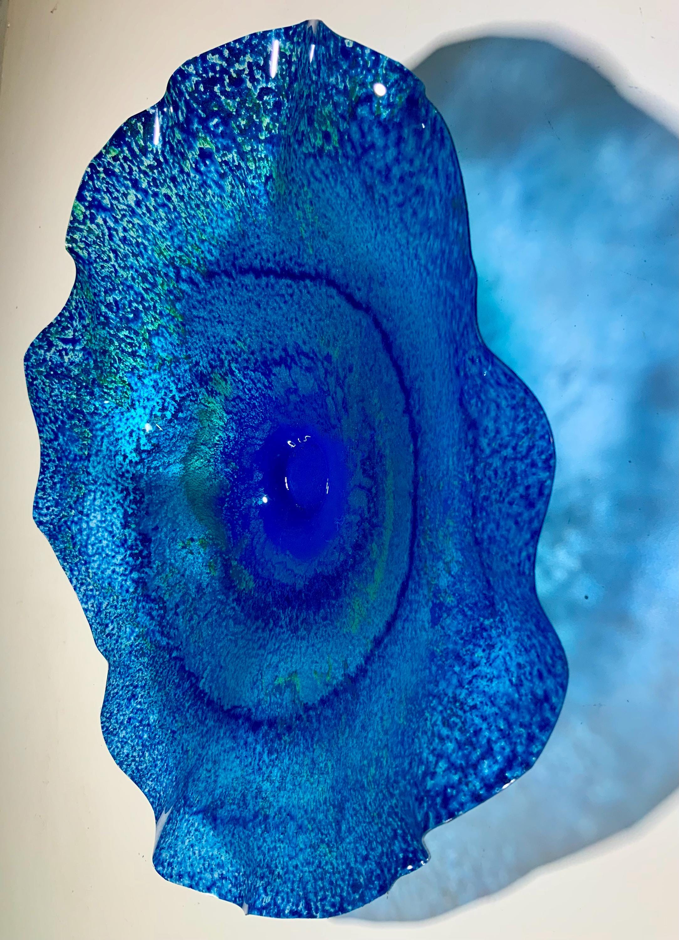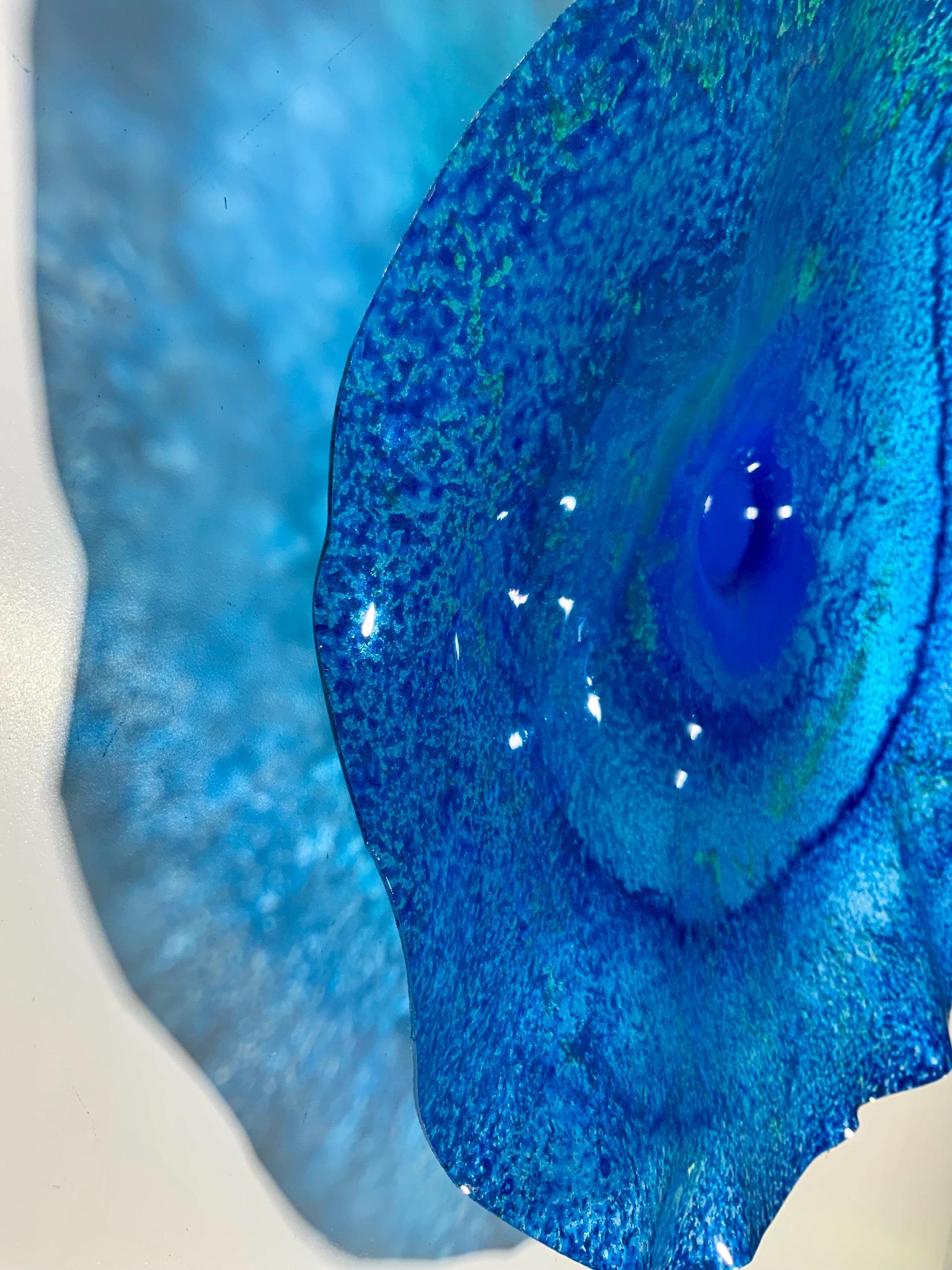 Large wall flower 16” fine art eco-friendly plastic;metallic blue/green looks like glass/window hanging/outdoor decor/livingroom art