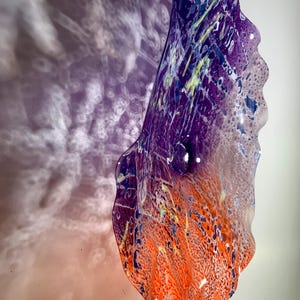 Each collectible piece is unique, no two are alike. This permanent, colorful, eye catching art looks and feels like glass. It shimmers in the light resembling water. They are very DURABLE AND LIGHTWEIGHT. This flower is easy to hang all weather and UV resistant. Great for indoor or outdoor decorating.