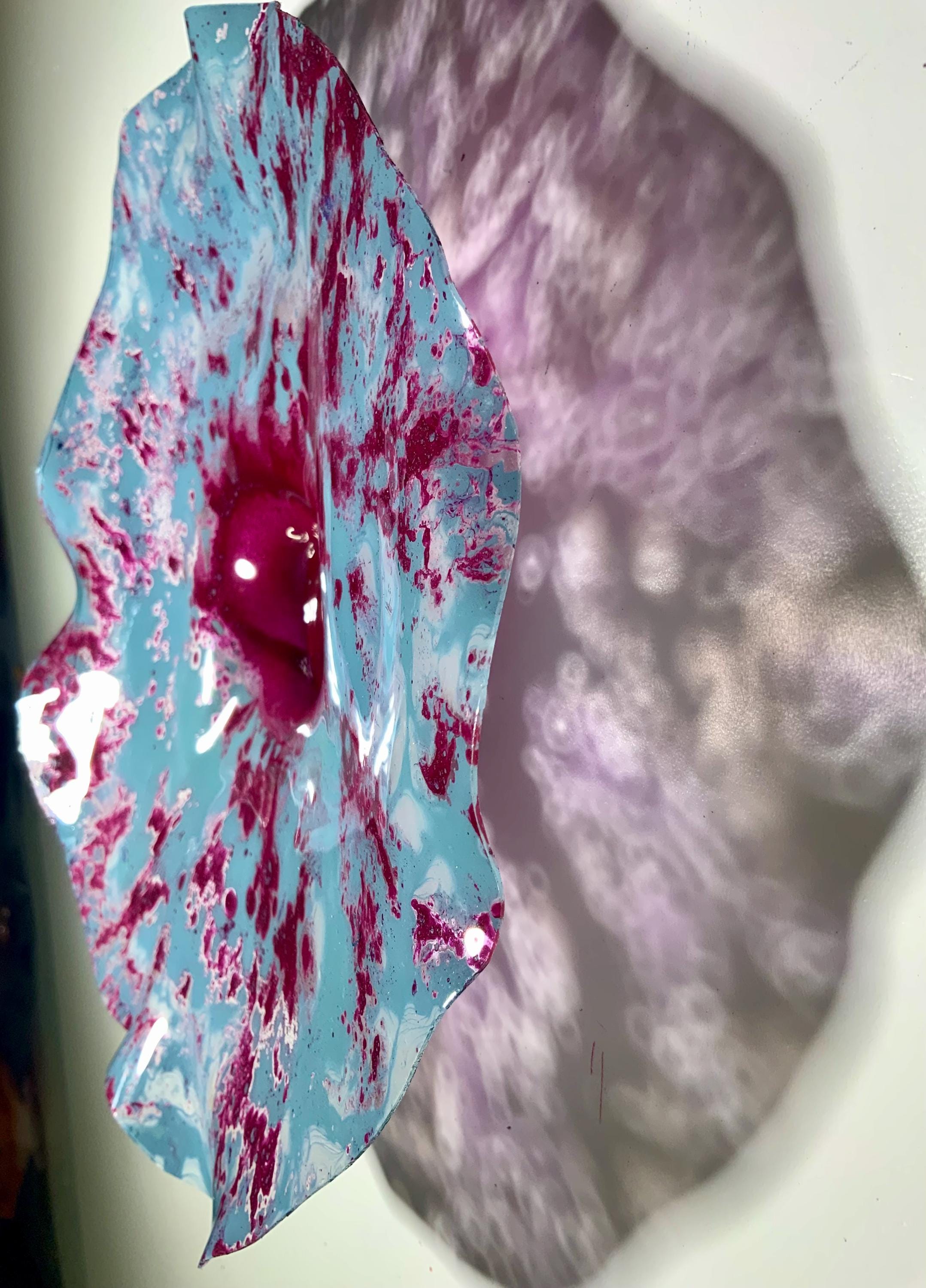 Our wall flowers are made from sustainable recycled PET as in a water bottle. Each piece contains at least 50% recycled polyethylene terphalate (rPET)