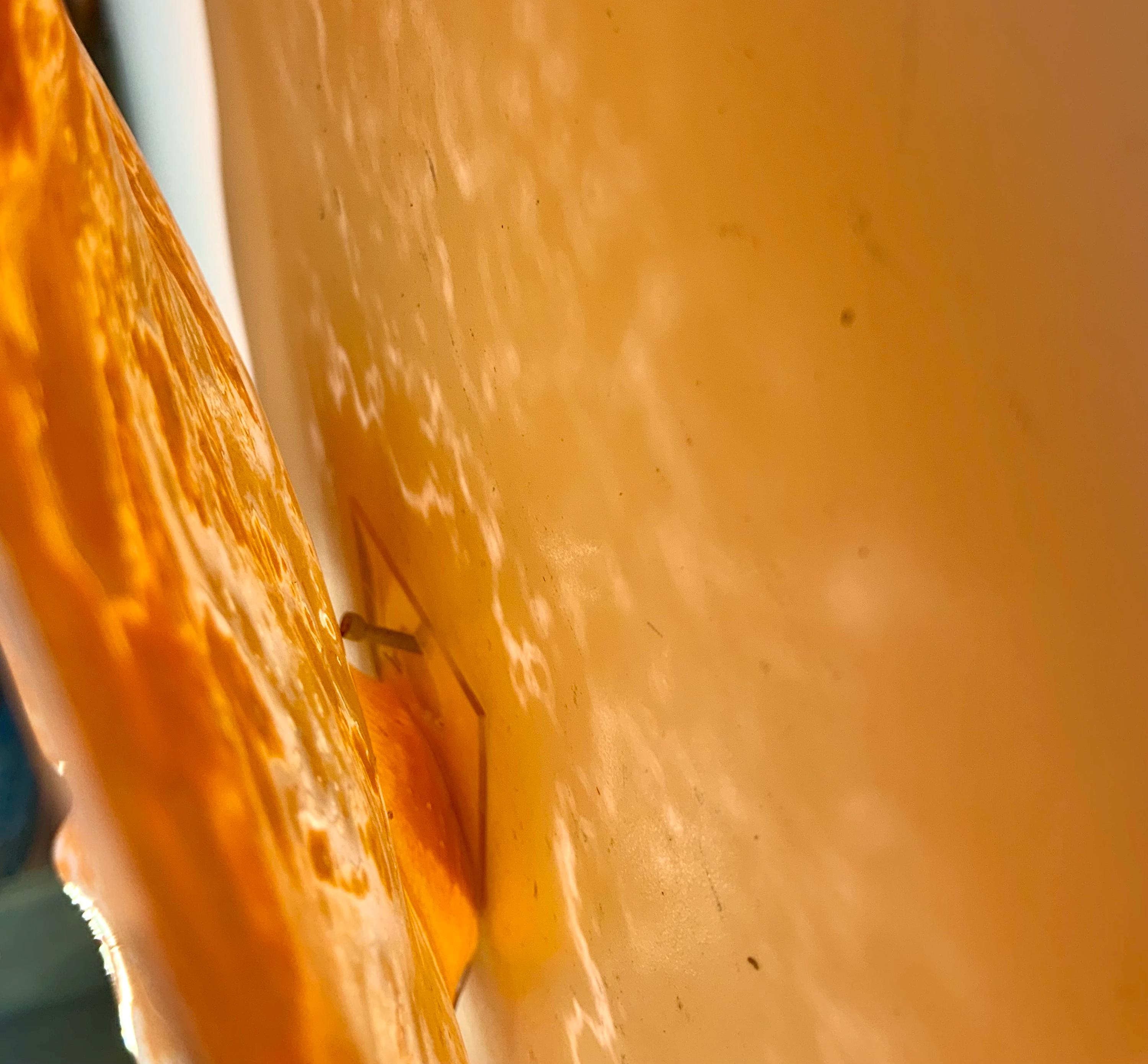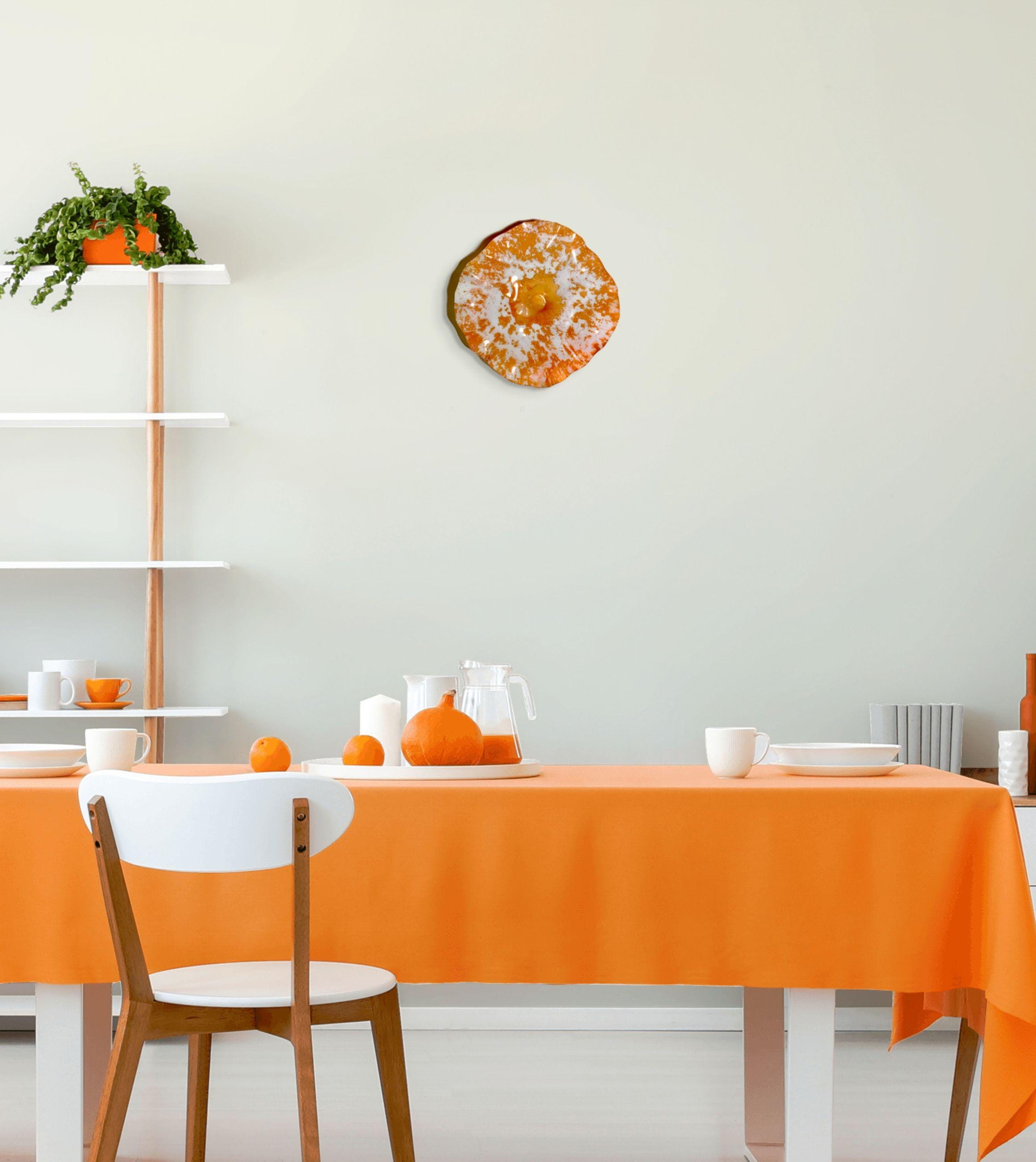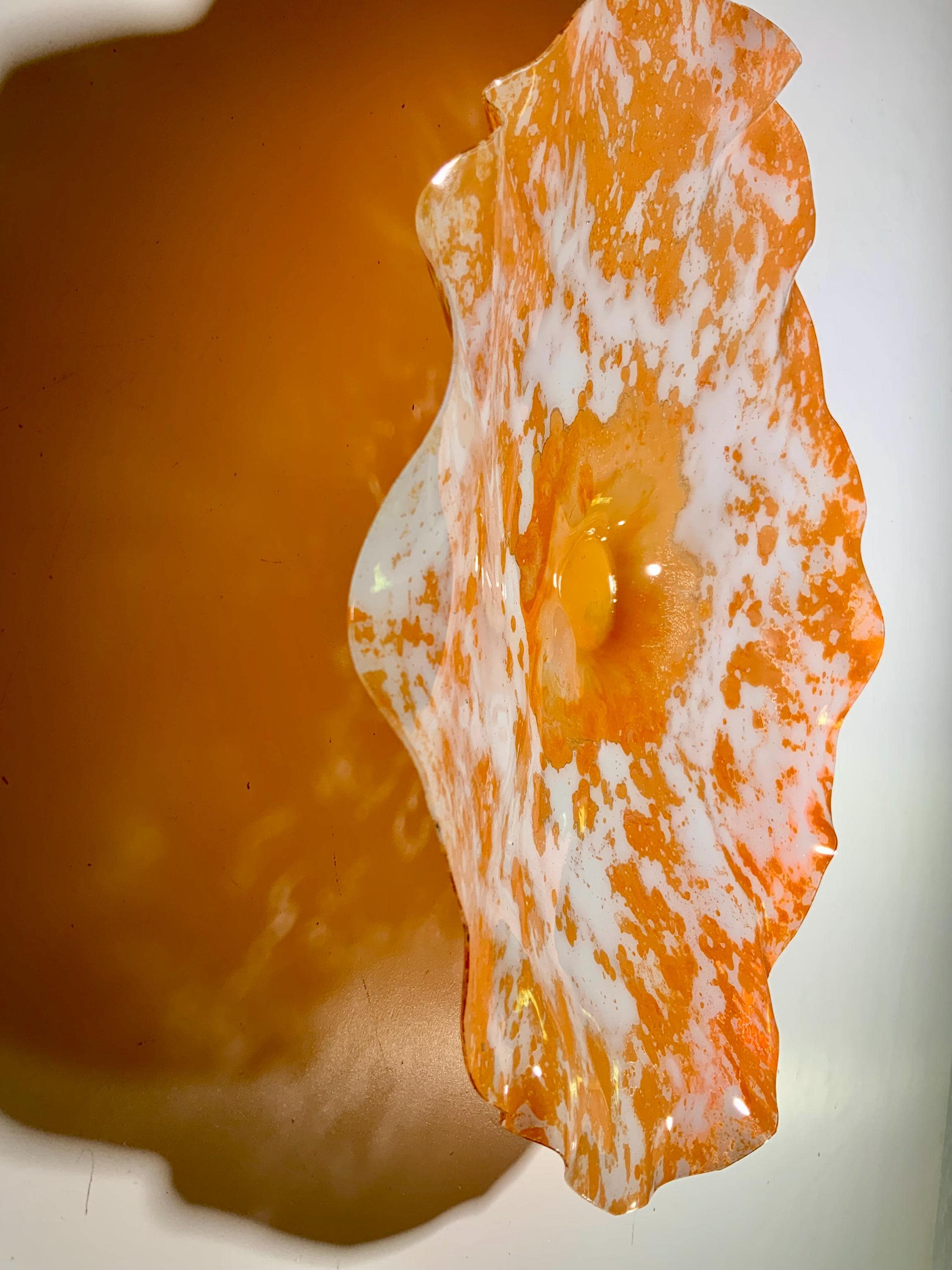 Wall flower happy blend of orange and white. The light filters through casting a colorful effect on the hanging surface.